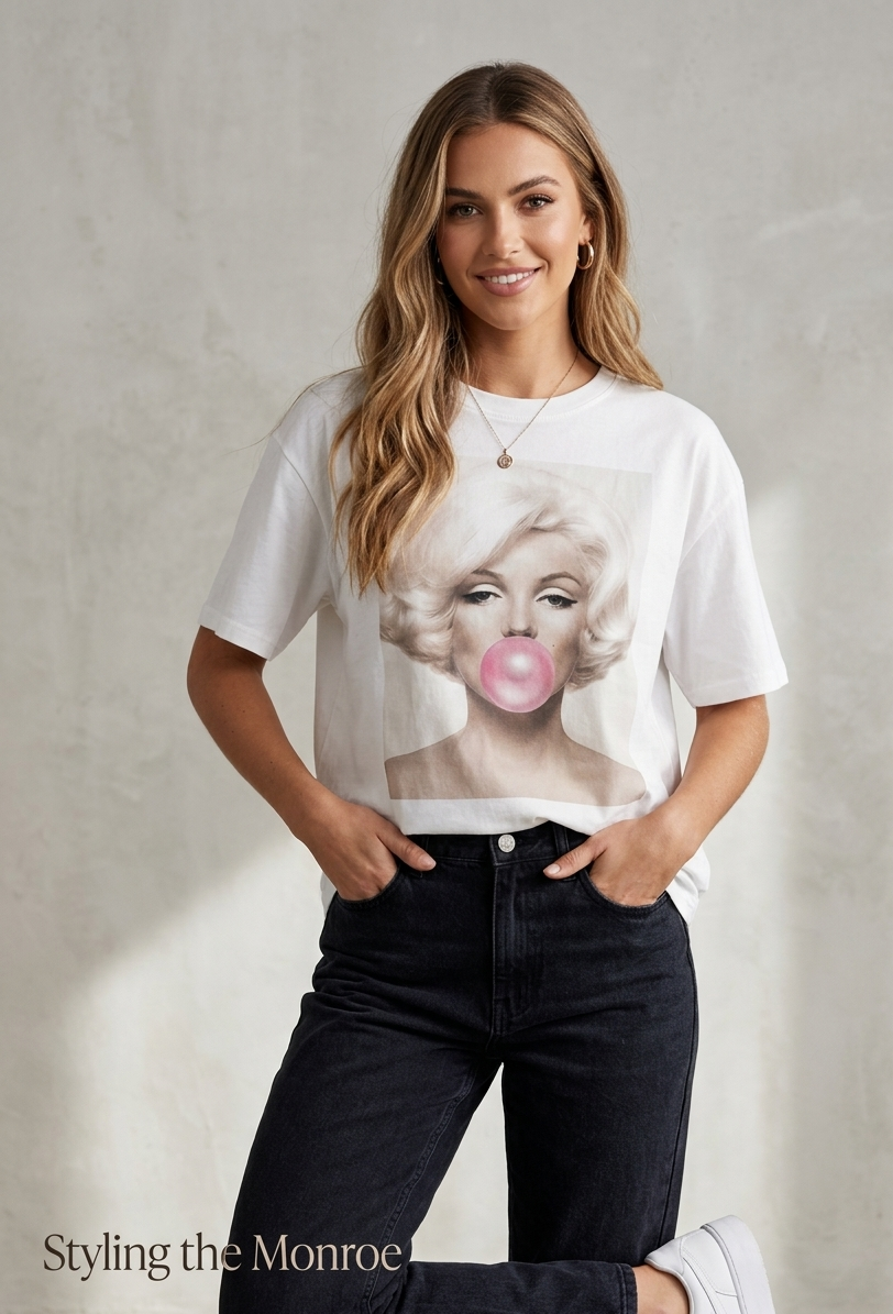 Monroe Muster Print T-Shirt Baumwolle pink kaugummi