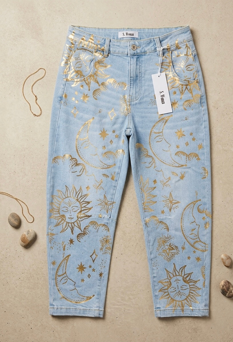 Sexy Woman Jeans Hose Tarot Style Gold Blau SW 1833 gold