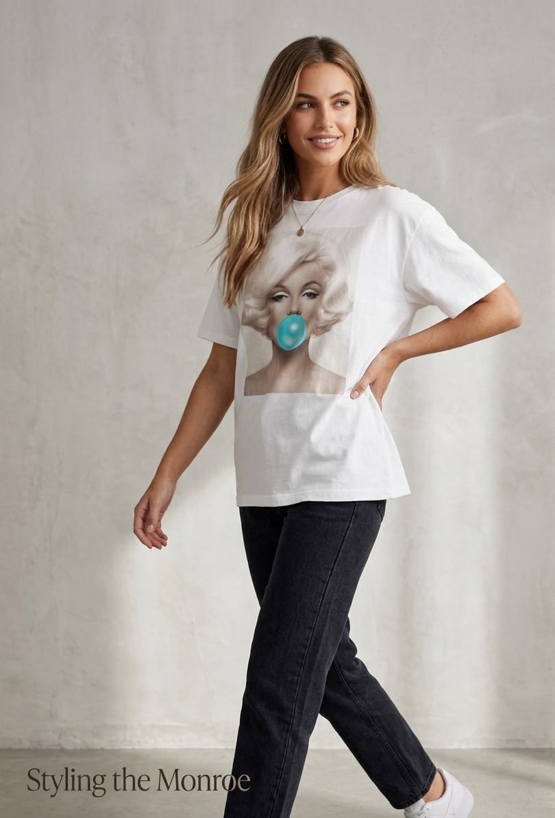 Monroe Muster Print T-Shirt Baumwolle blau kaugummi