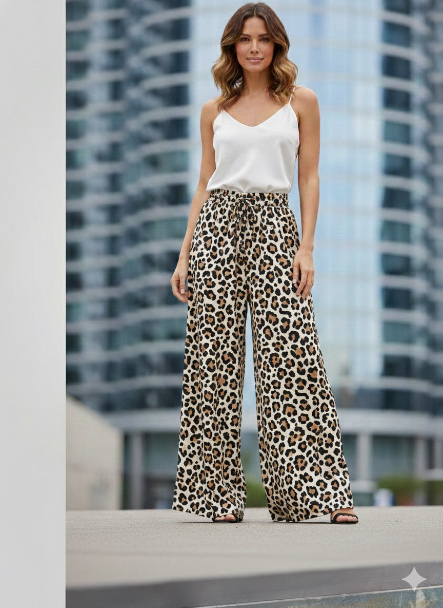 Satin Leopard Weite Hose