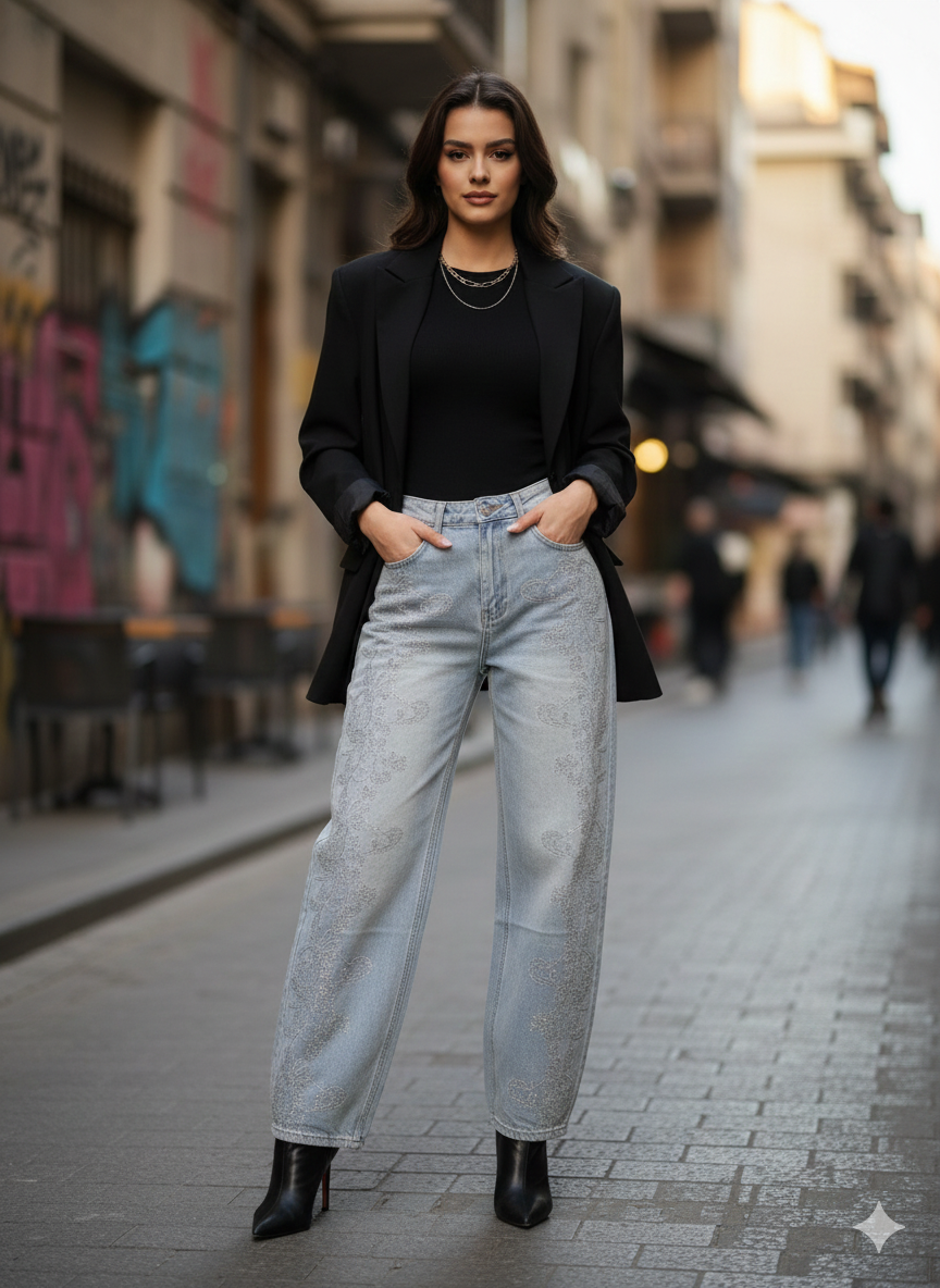 Bestickte Damen-Jeans mit Blumen – Handgefertigte Details & Trendy Fit Jeans Hose MC
