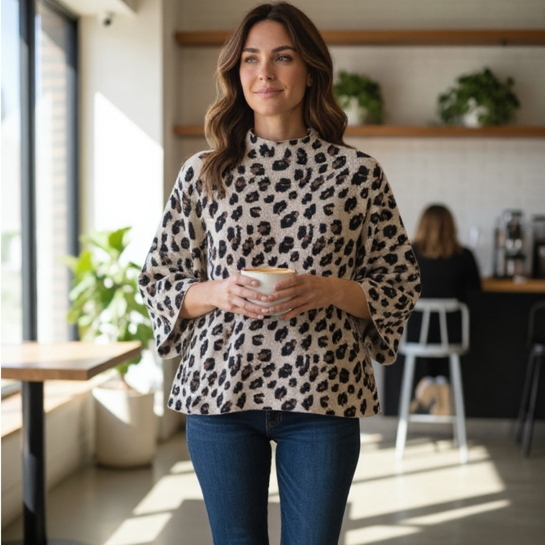 Leopard Strick Pullover Beige Braun