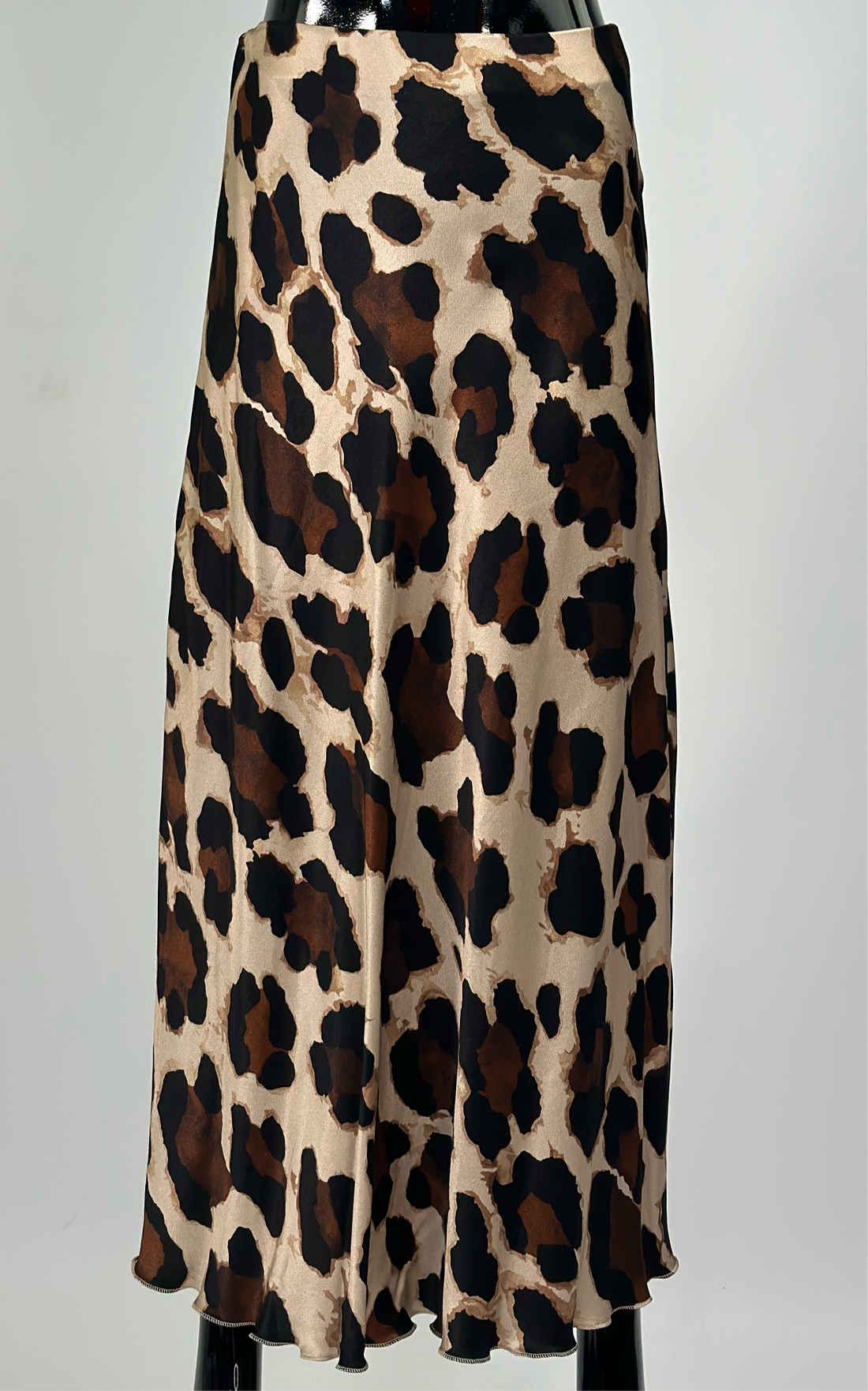 Dieser Leopard Maxi Rock in Satin Beige Braun ist das neueste Trendmodell für Damen....