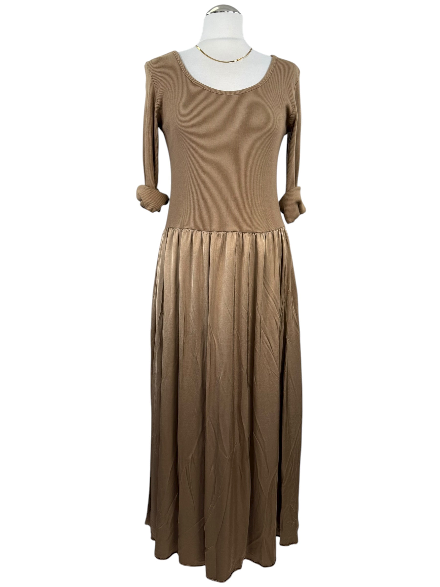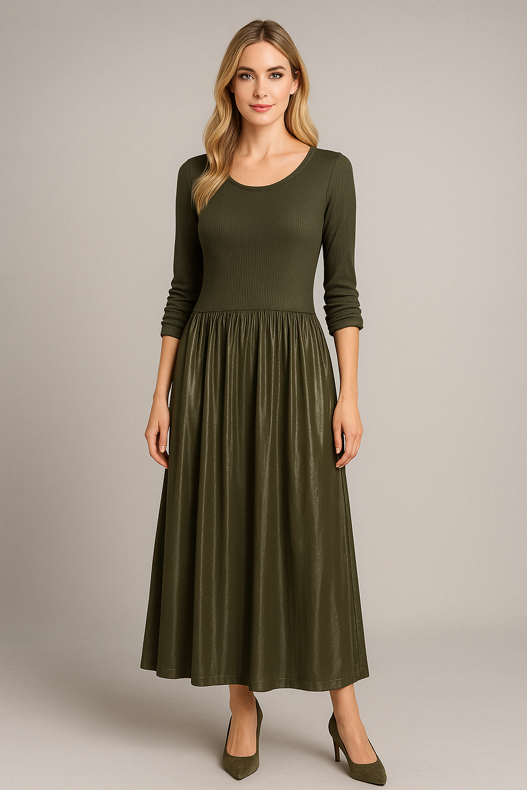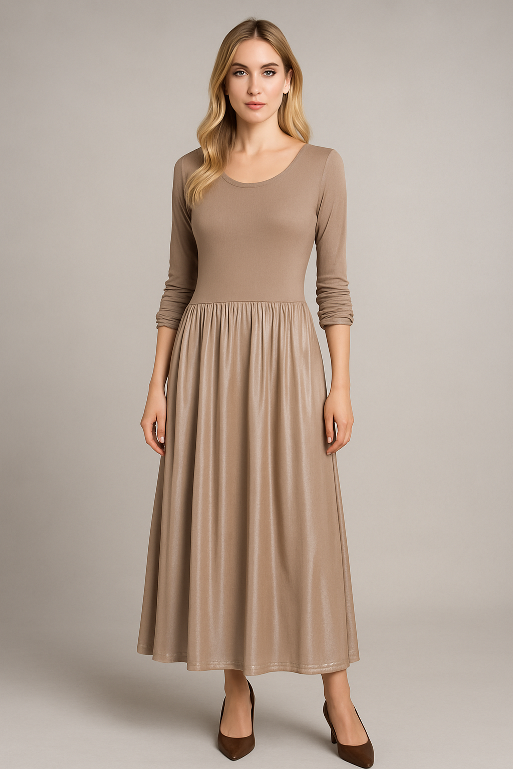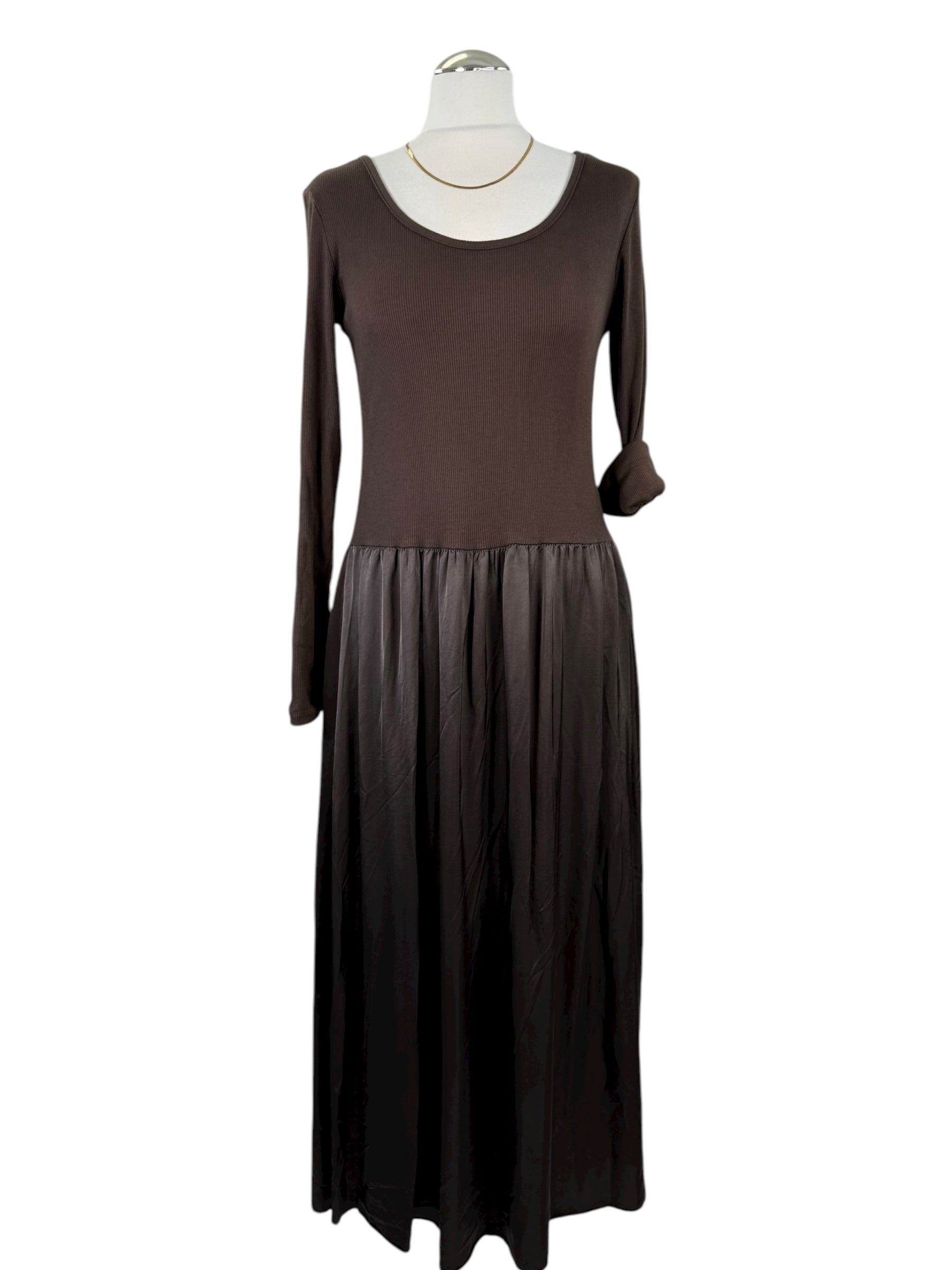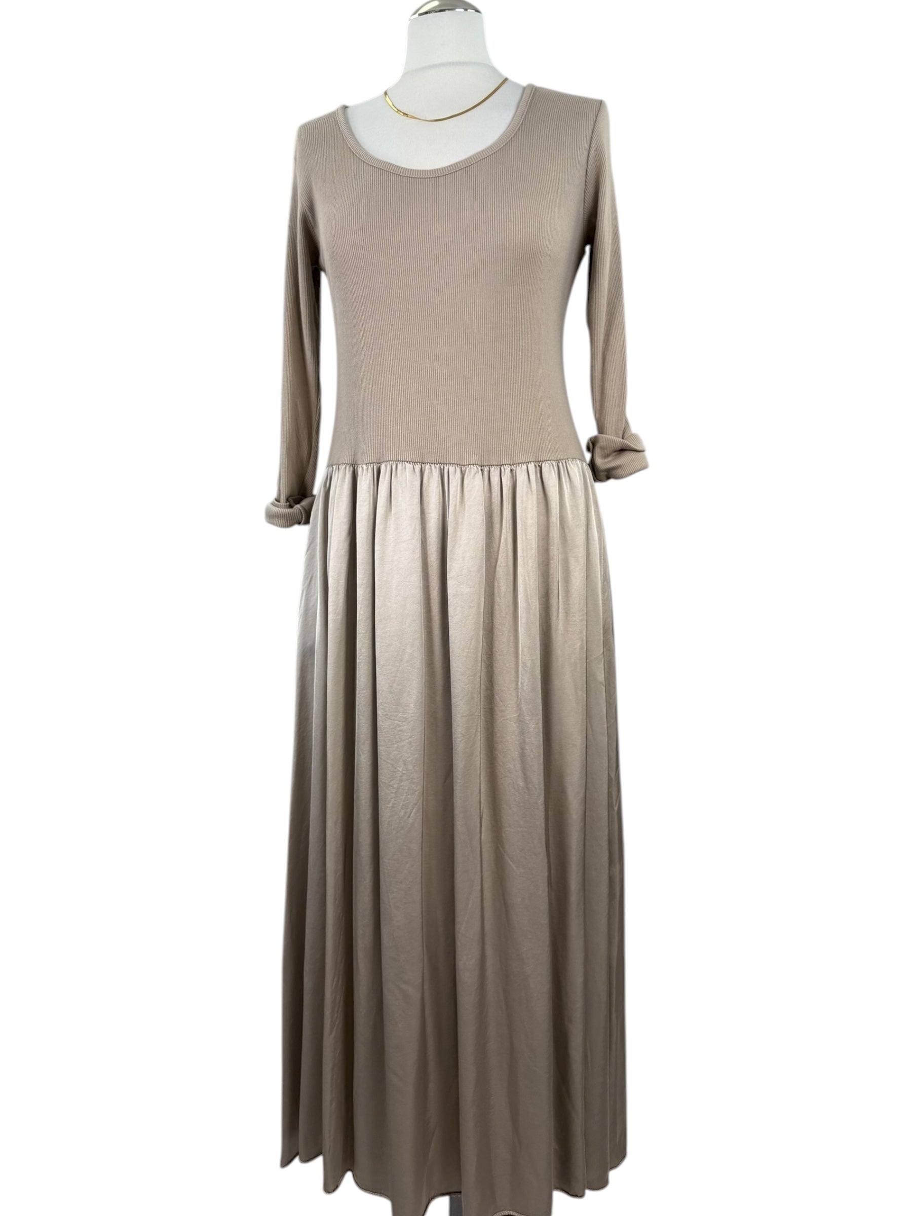 Dieses elegante Seide Kleid mit strukturiertem Oberteil und glänzendem Satinrock ist ein Must-Have für jede modebewusste Frau. Die seitlichen Taschen sind praktisch und der Maxi Schnitt (ca. 132/137 cm) passt für Einheitsgrößen 34-42. Der weiche Stoff aus Seide & Viskose unten und Baumwolle mit Struktur oben verleiht dem Kleid einen Hauch von italienischer Eleganz. Perfekt für jeden Anlass!