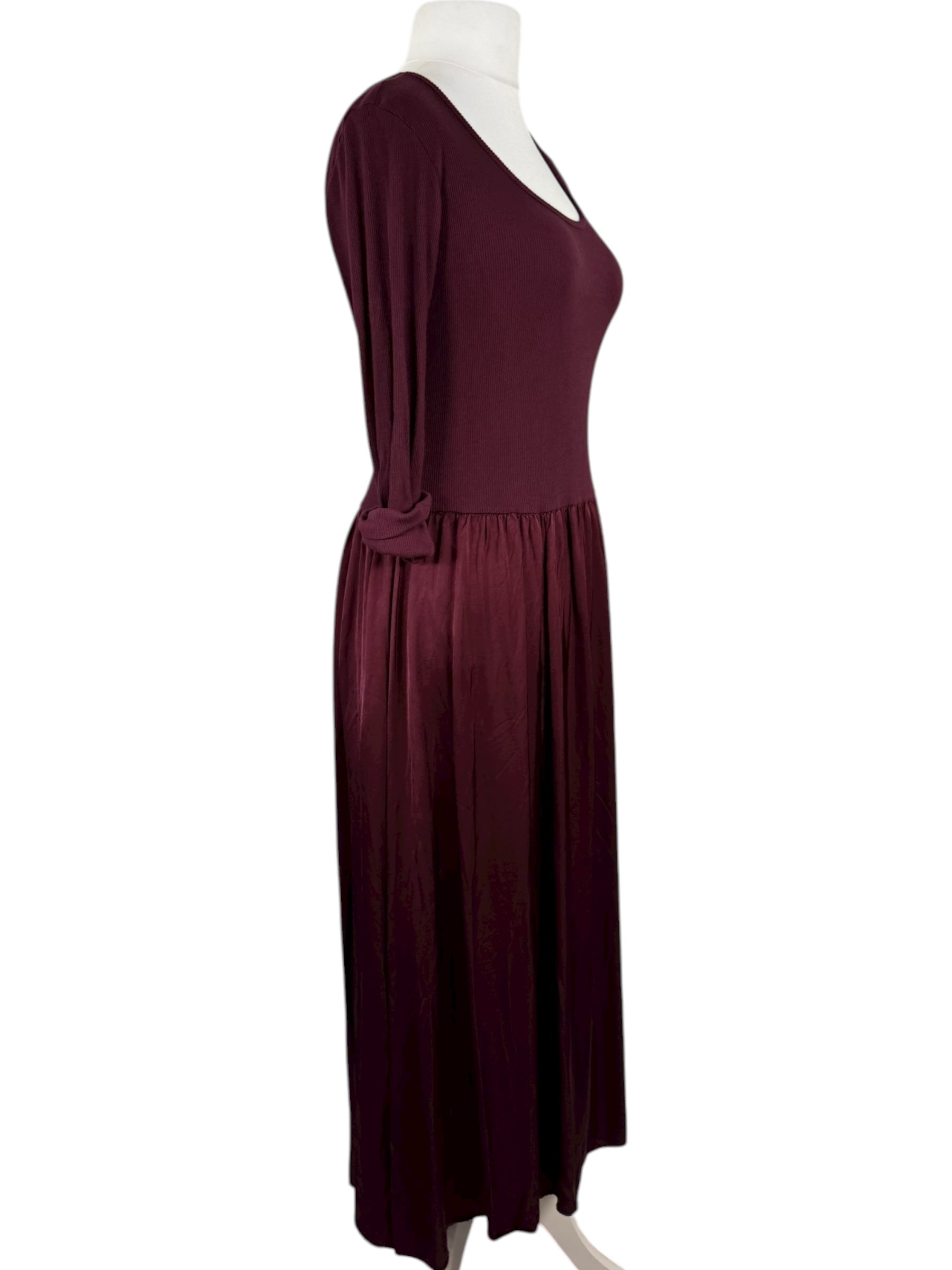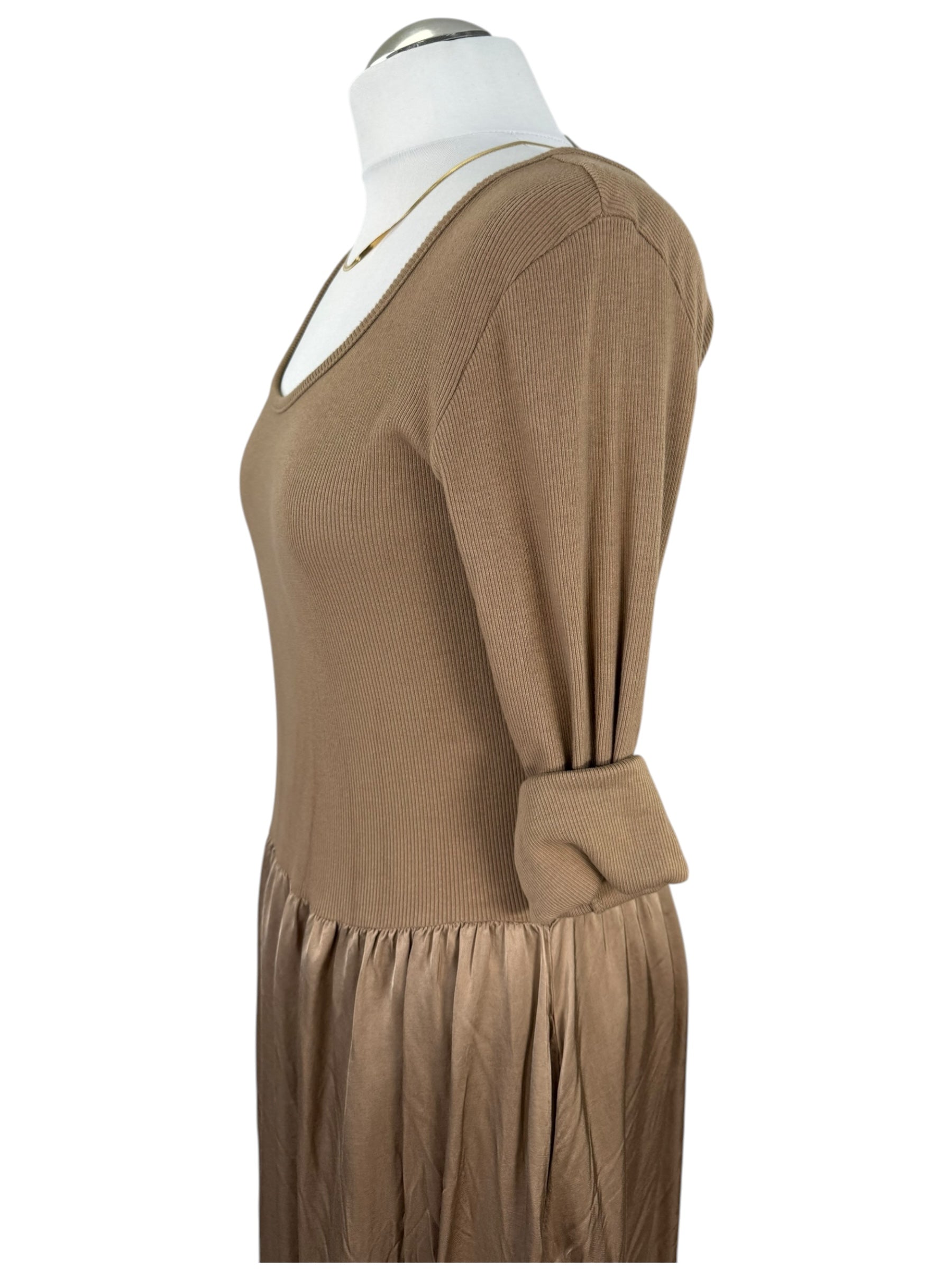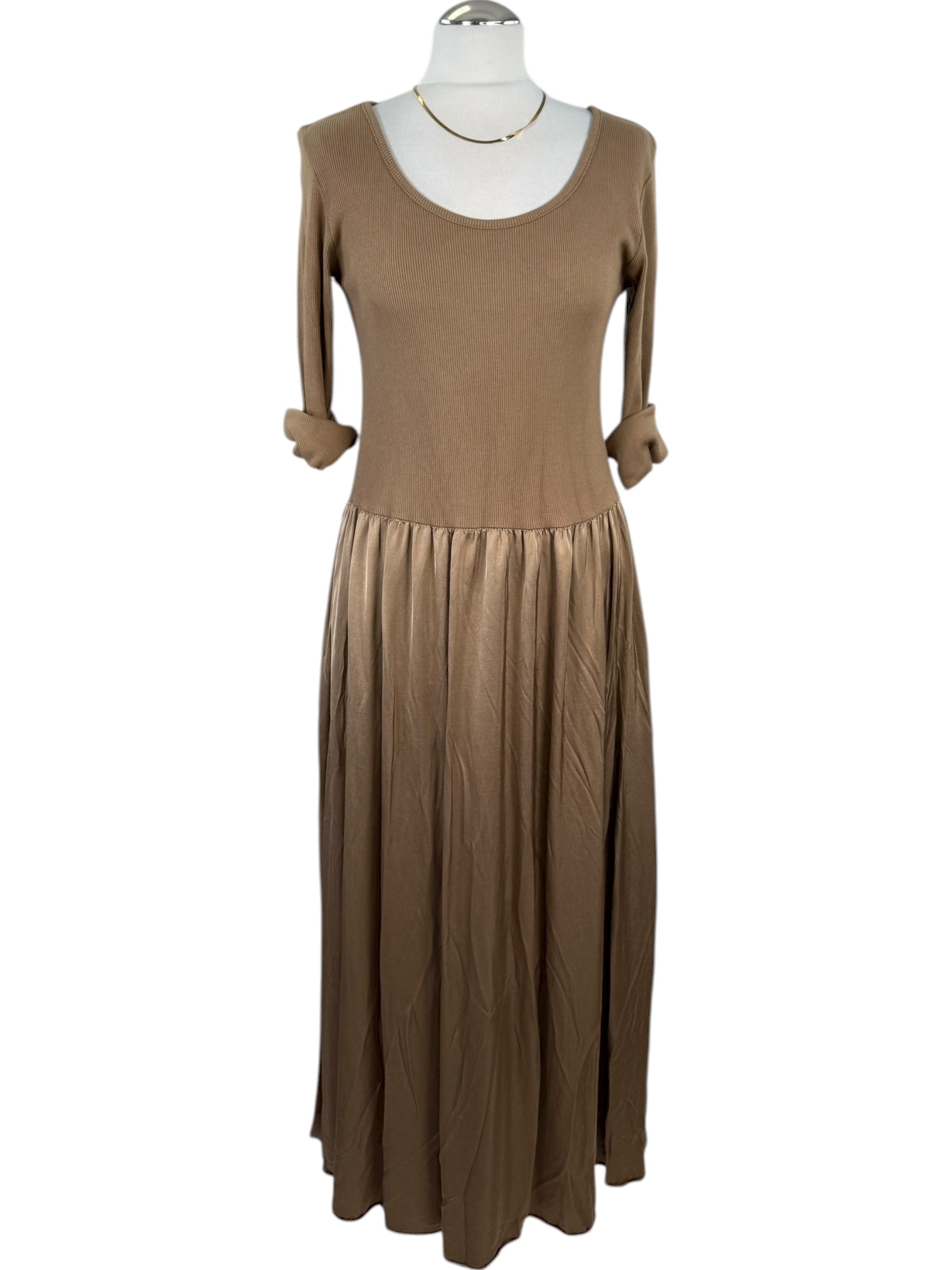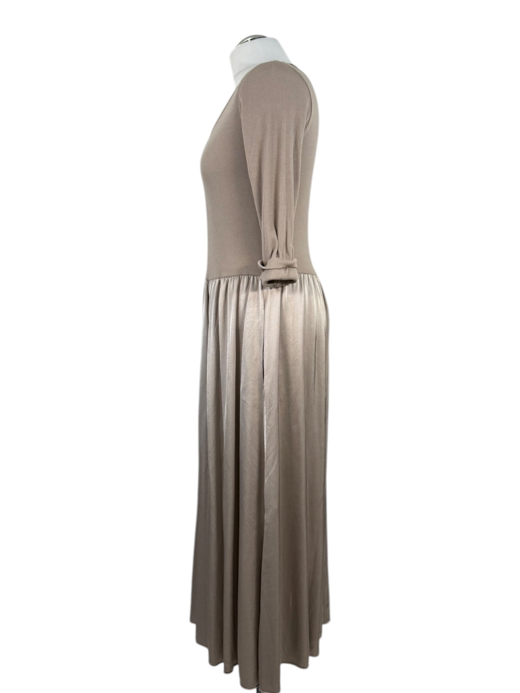 Dieses elegante Seide Kleid mit strukturiertem Oberteil und glänzendem Satinrock ist ein Must-Have für jede modebewusste Frau. Die seitlichen Taschen sind praktisch und der Maxi Schnitt (ca. 132/137 cm) passt für Einheitsgrößen 34-42. Der weiche Stoff aus Seide & Viskose unten und Baumwolle mit Struktur oben verleiht dem Kleid einen Hauch von italienischer Eleganz. Perfekt für jeden Anlass!