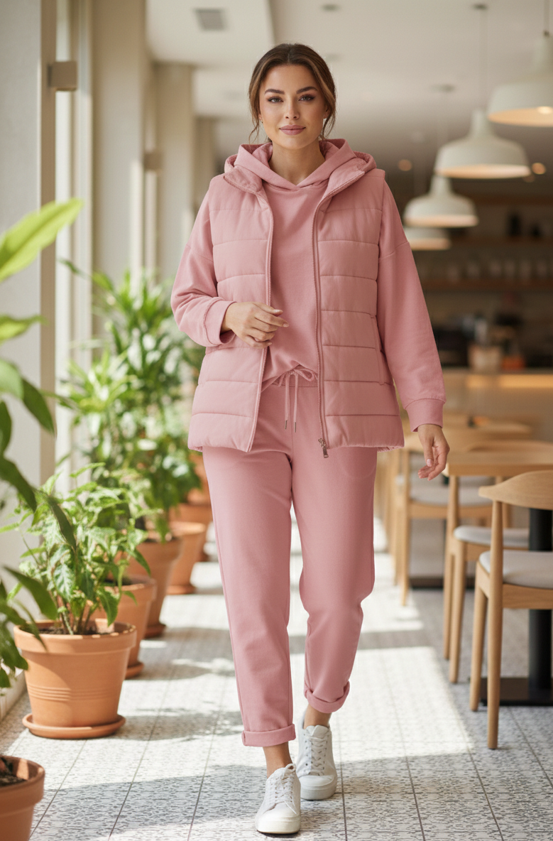 Baumwoll 3-teiliges Komfort-Set – Hoodie, Hose & Weste