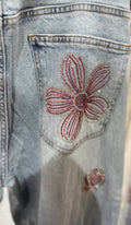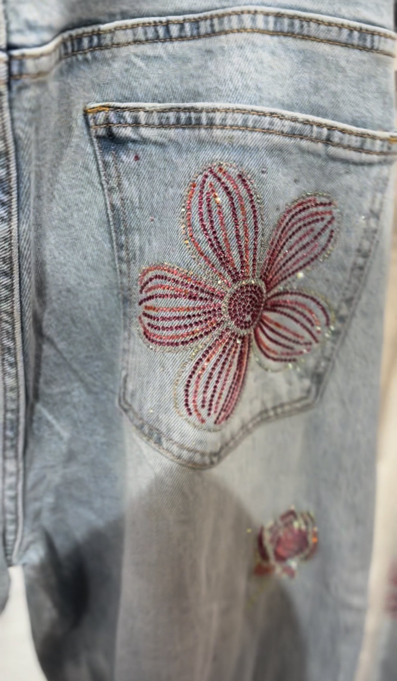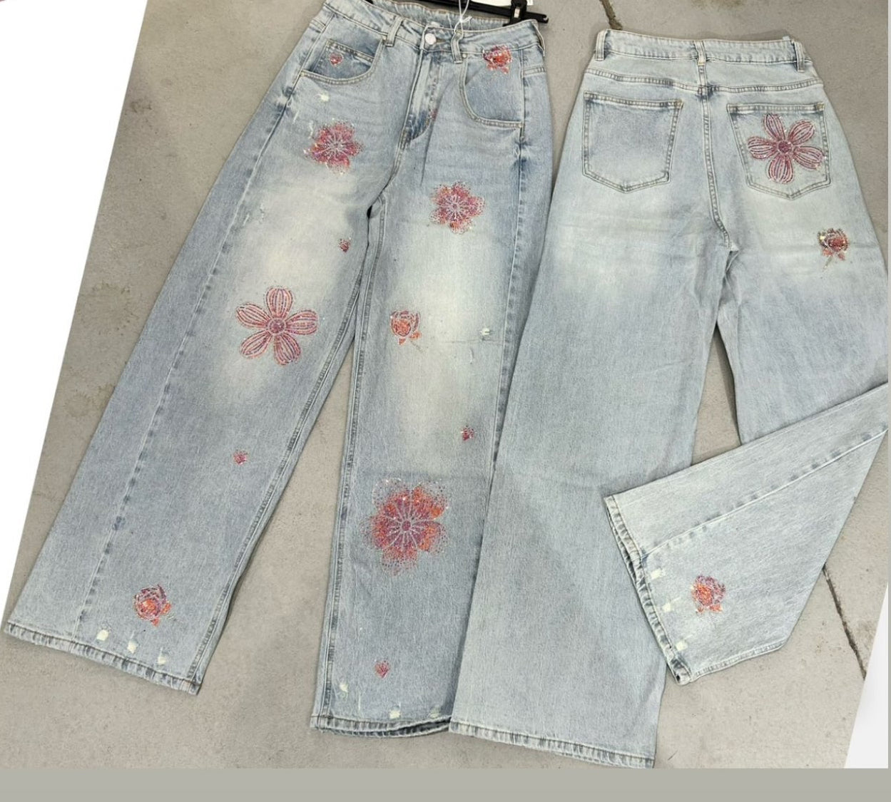 Diese modische Jeans kombiniert Eleganz und Stil mit einem einzigartigen Herz-Patchwork und funkelnden Stickereien. Ob casual oder chic – sie ist die perfekte Wahl für jede Gelegenheit.