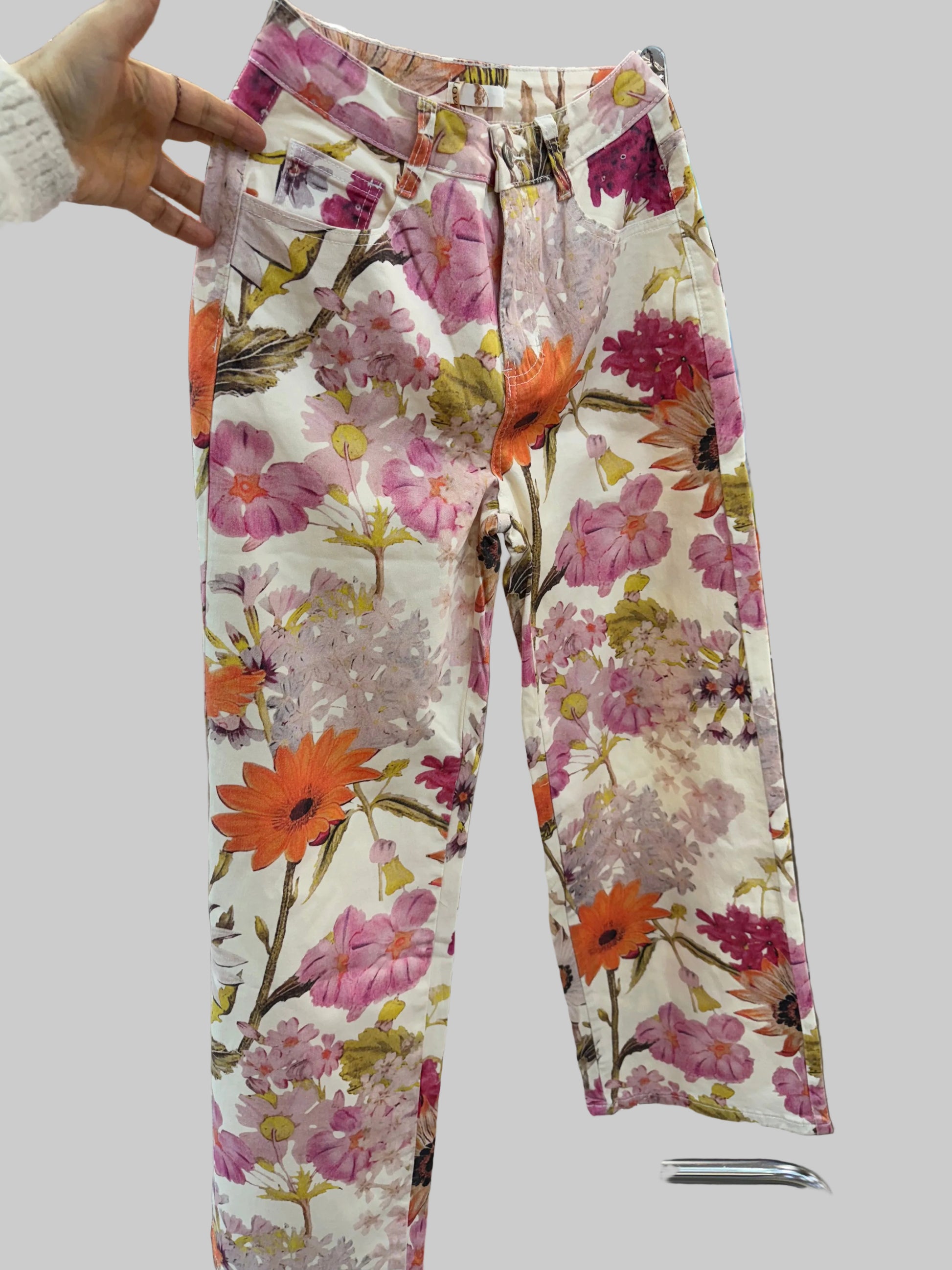 Florale High-Waist-Hose | Frühlingslook Blumen Denim Hose Vintage