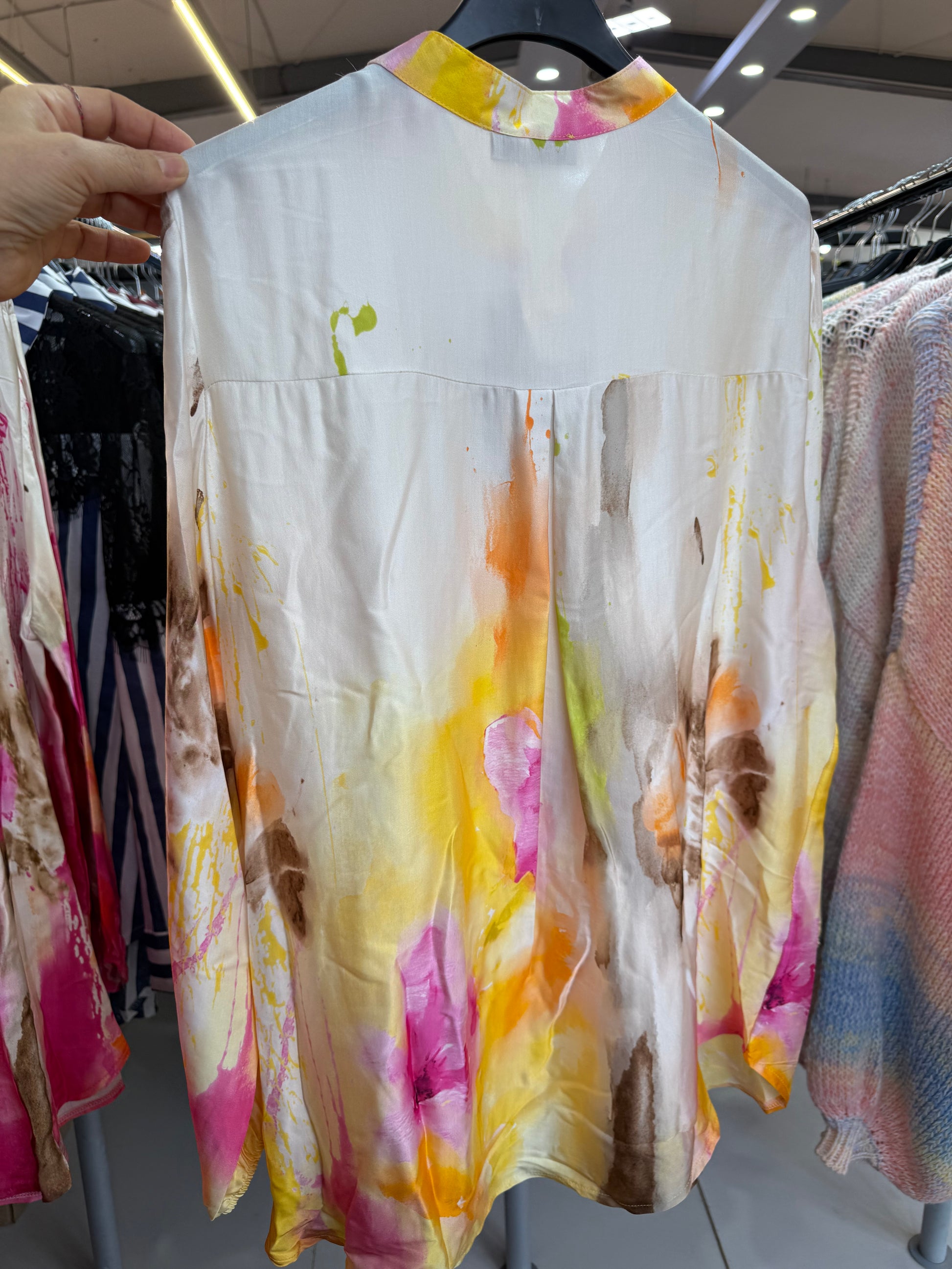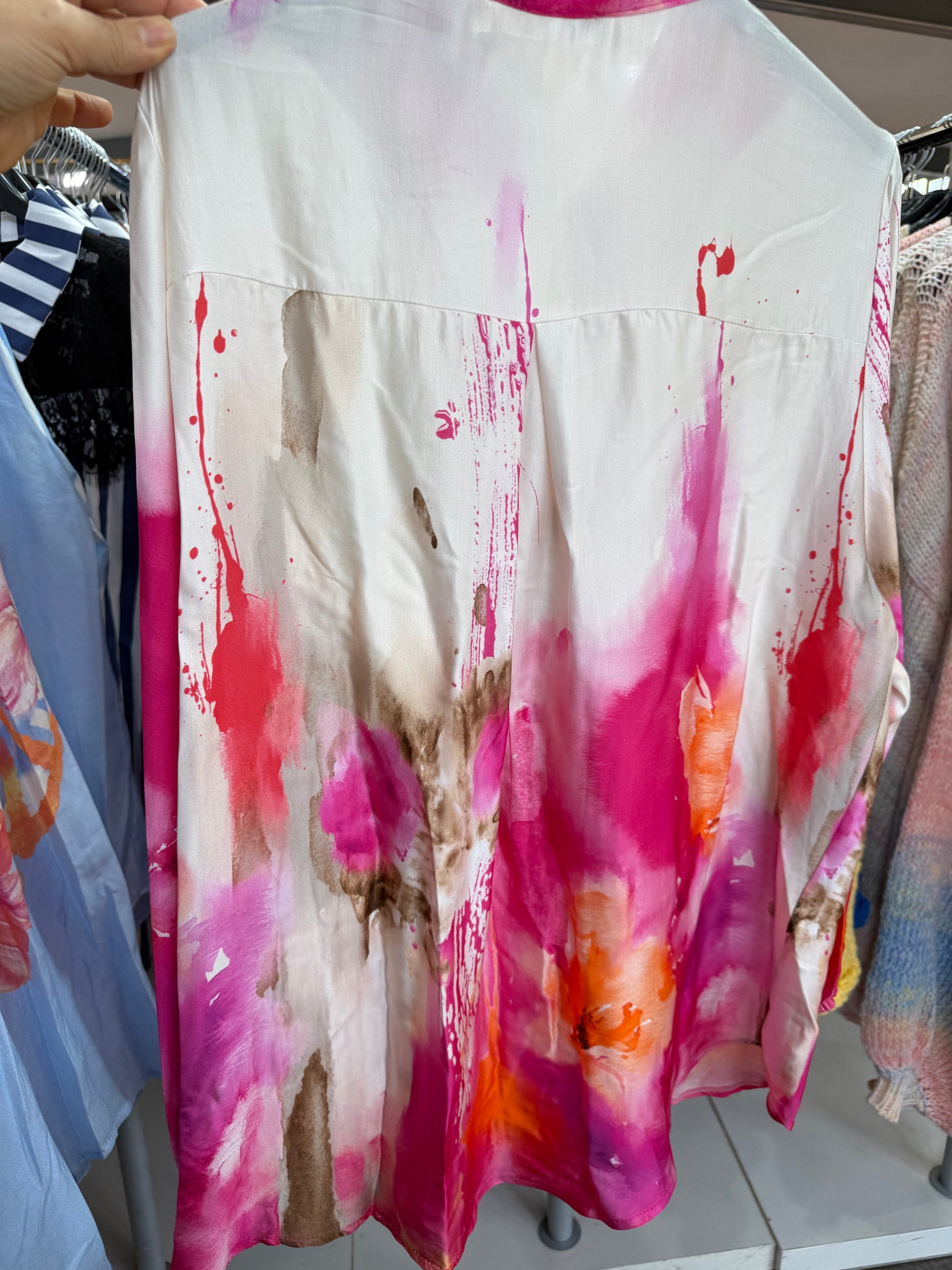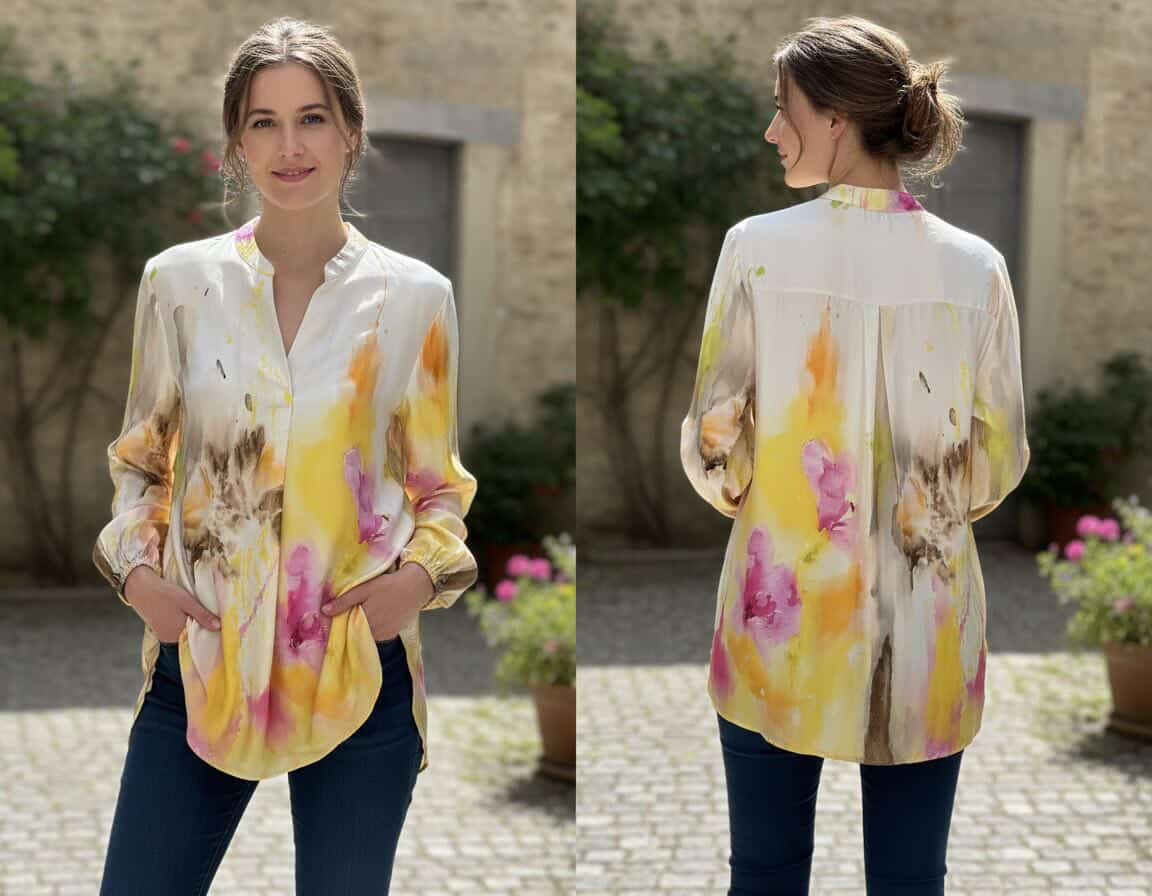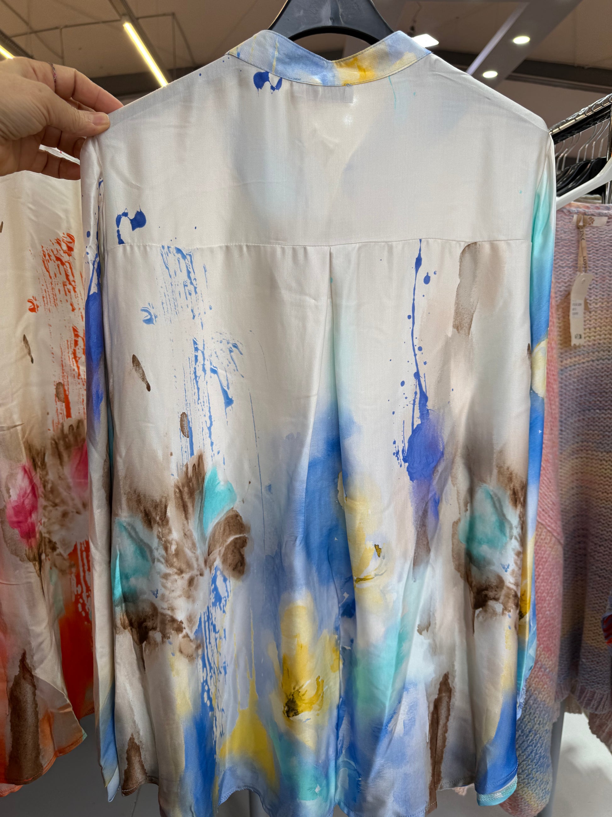 Entdecken Sie die Eleganz und Raffinesse, eine Damenbluse aus glänzendem Seidensatin mit Malereffekt. Die Einheitsgröße passt perfekt zu jeder Figur und der Effekt verleiht dem Blusen-Look das gewisse Etwas. Machen Sie ein Statement mit dieser hochwertigen Bluse.