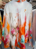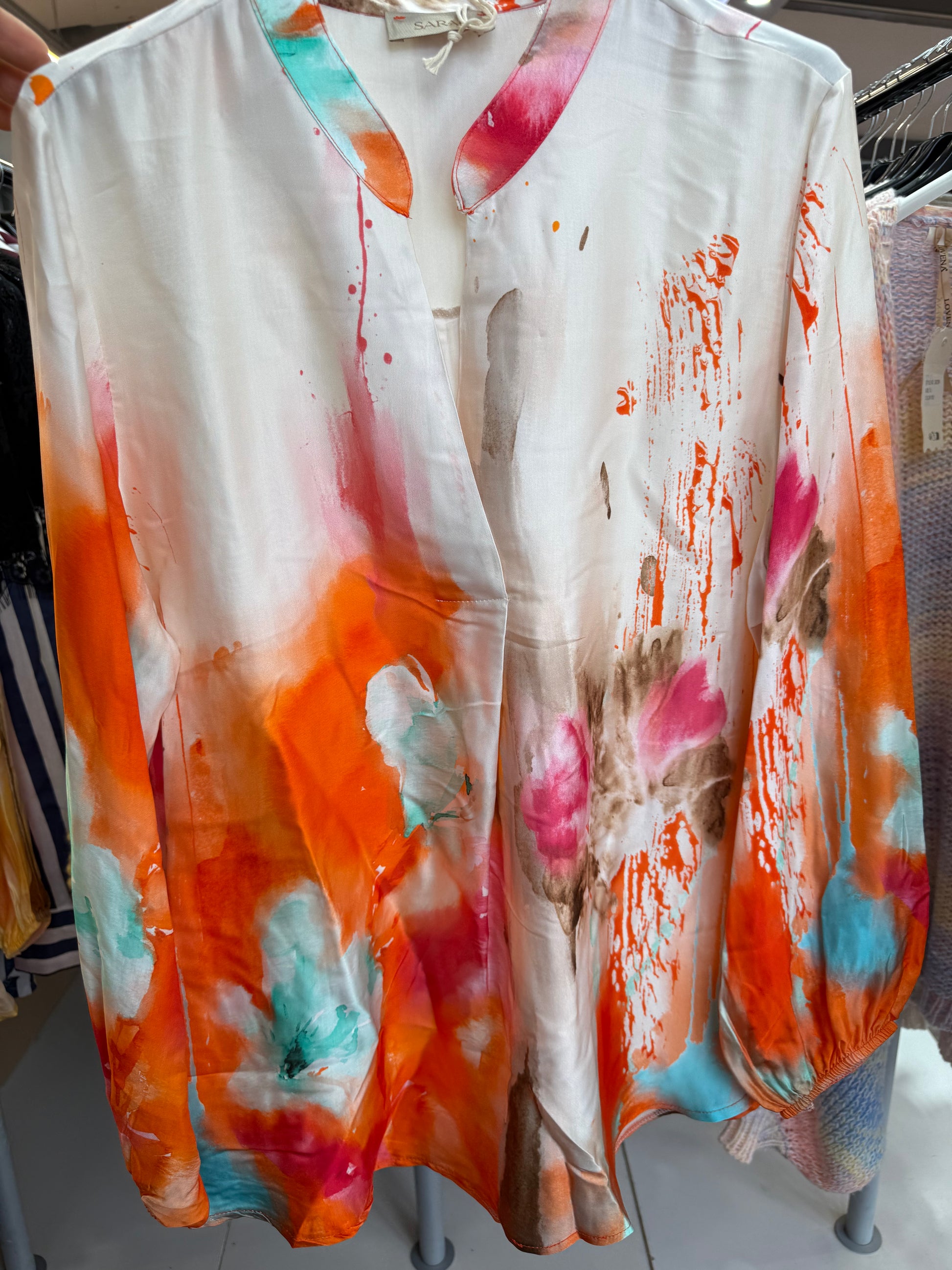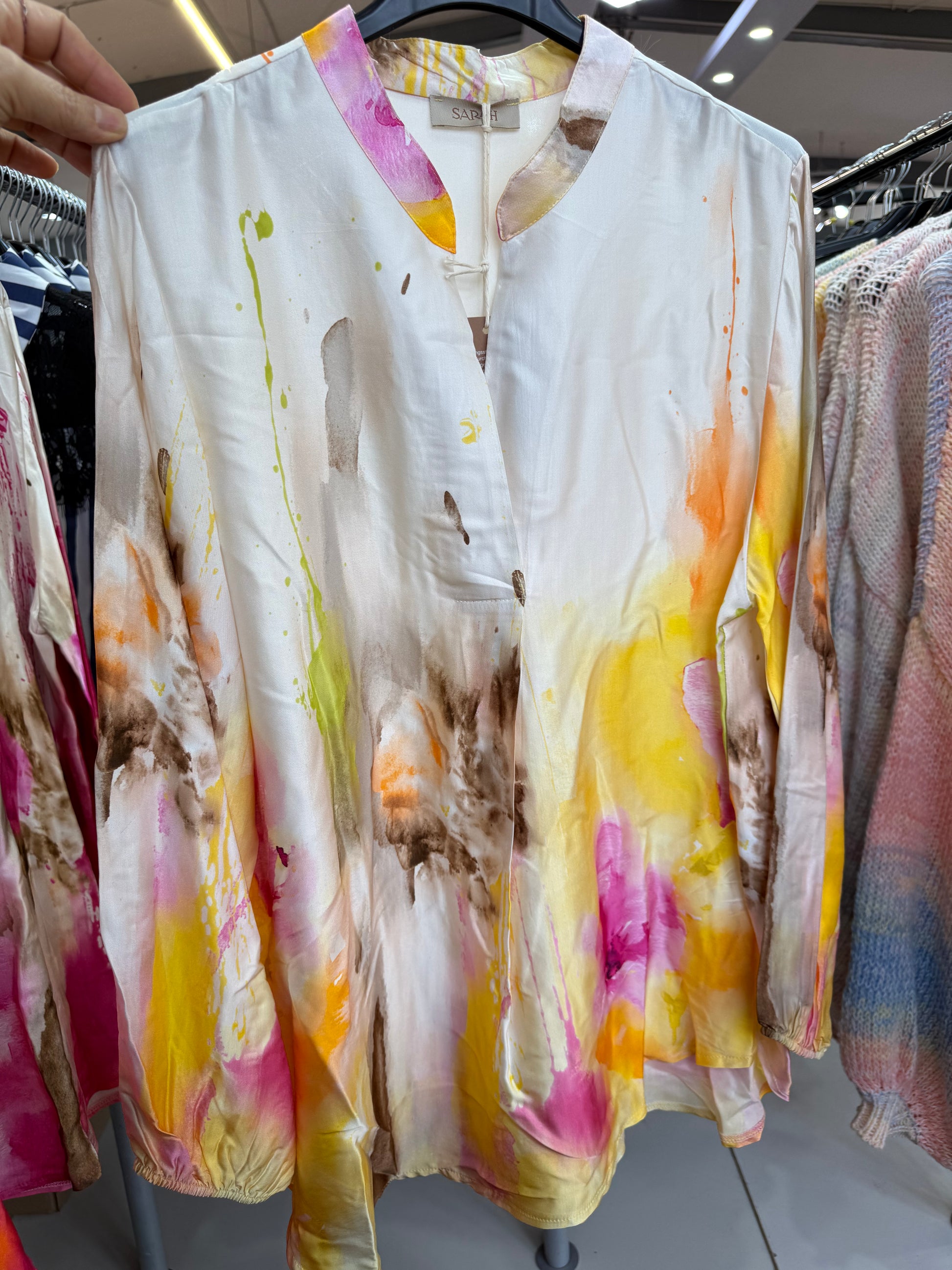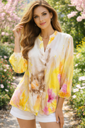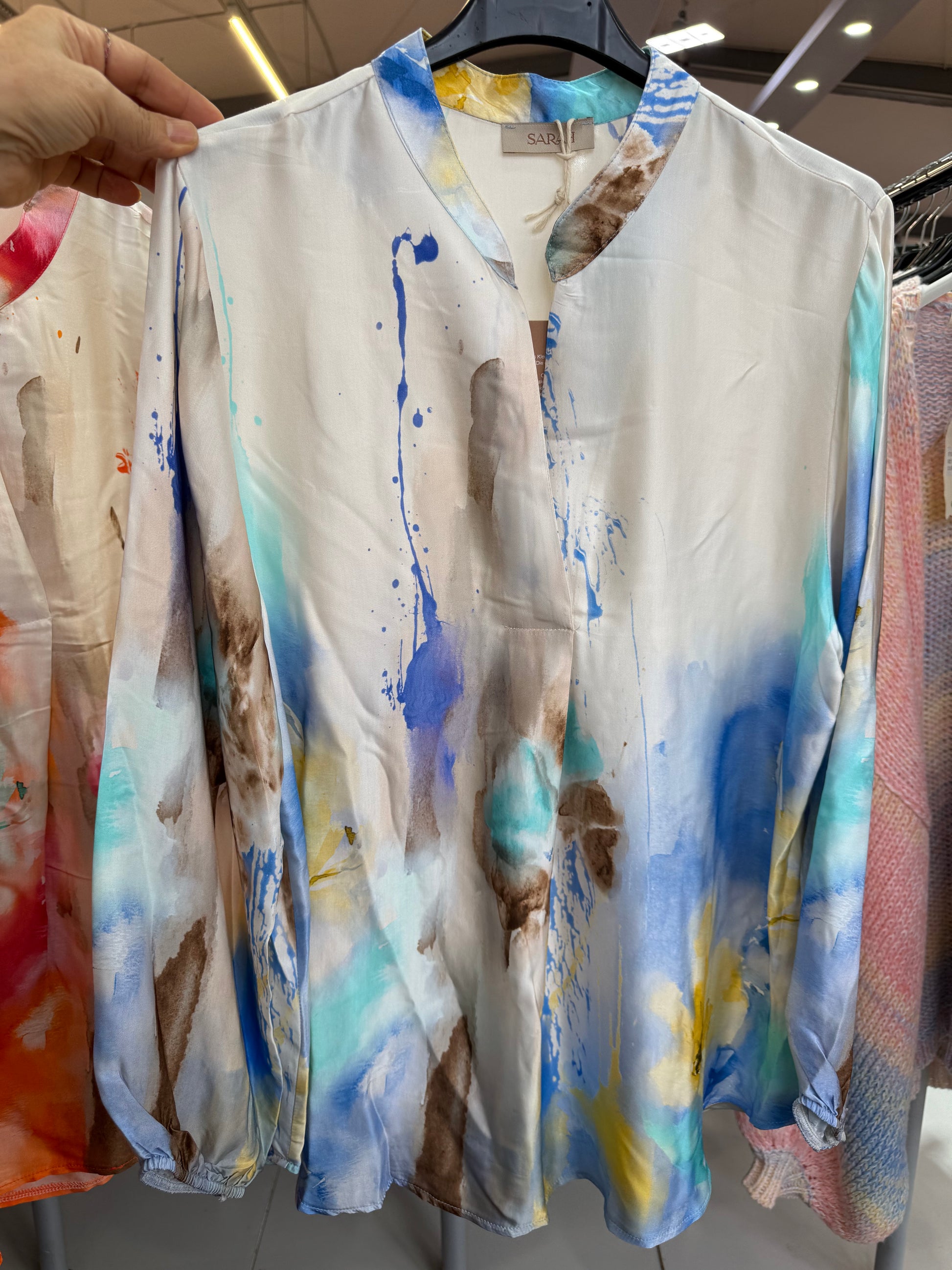 Entdecken Sie die Eleganz und Raffinesse, eine Damenbluse aus glänzendem Seidensatin mit Malereffekt. Die Einheitsgröße passt perfekt zu jeder Figur und der Effekt verleiht dem Blusen-Look das gewisse Etwas. Machen Sie ein Statement mit dieser hochwertigen Bluse.