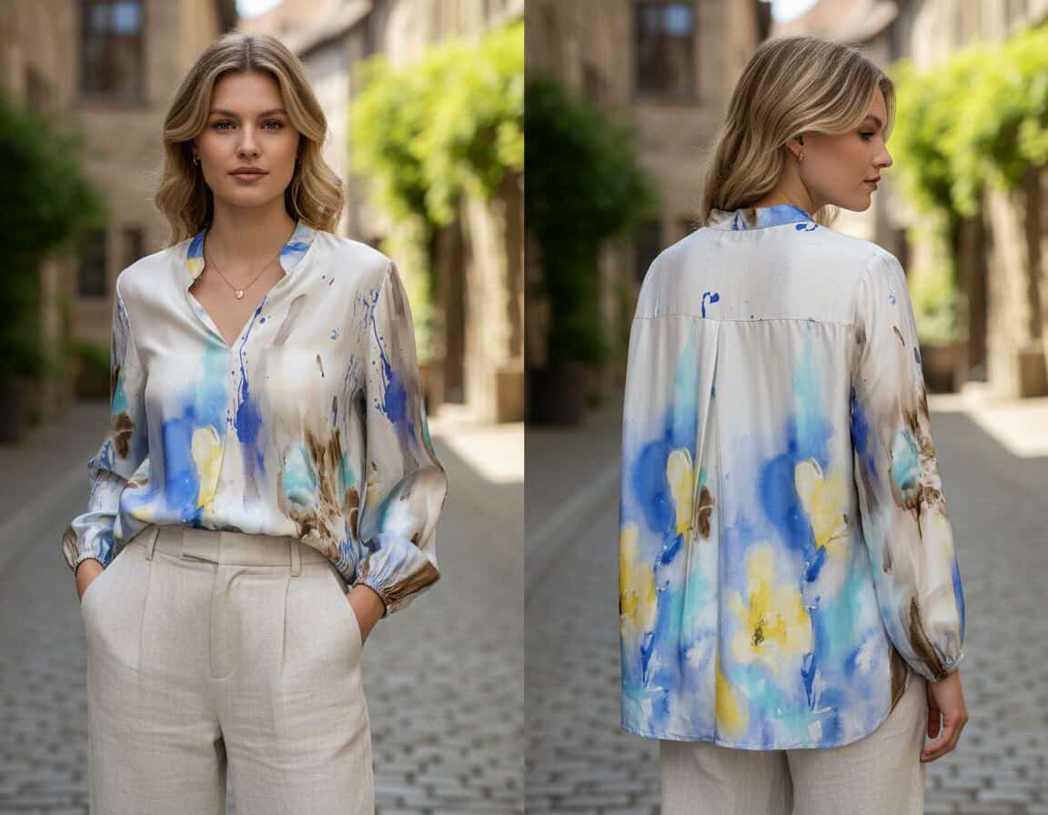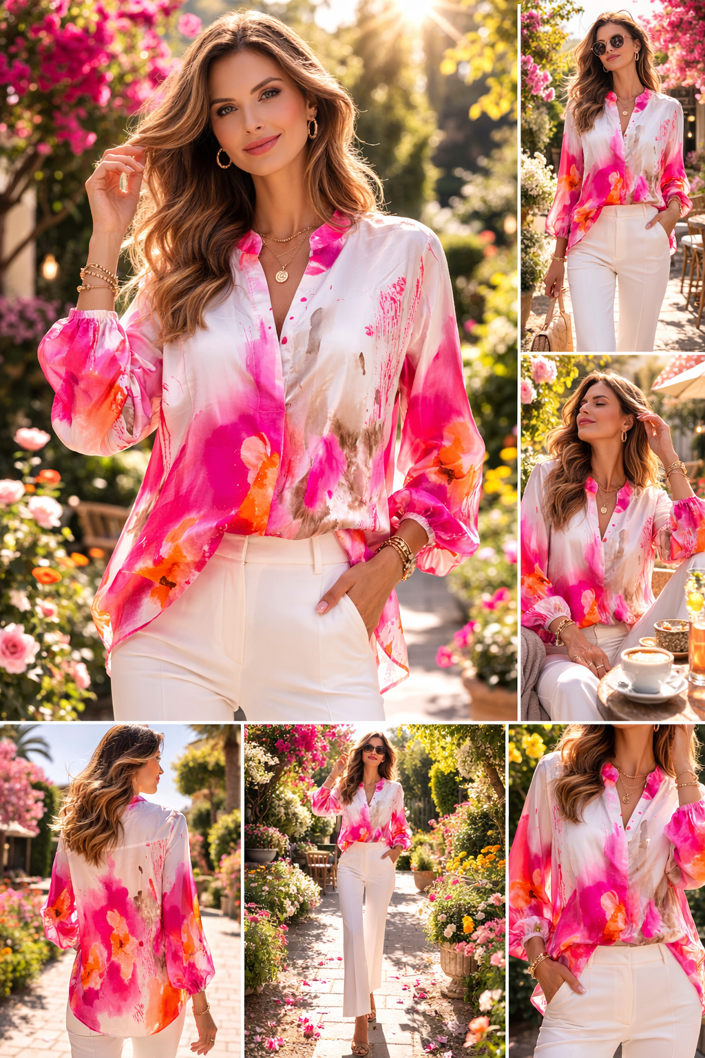 Frühlingshafte Satin-Bluse mit fließender Silhouette