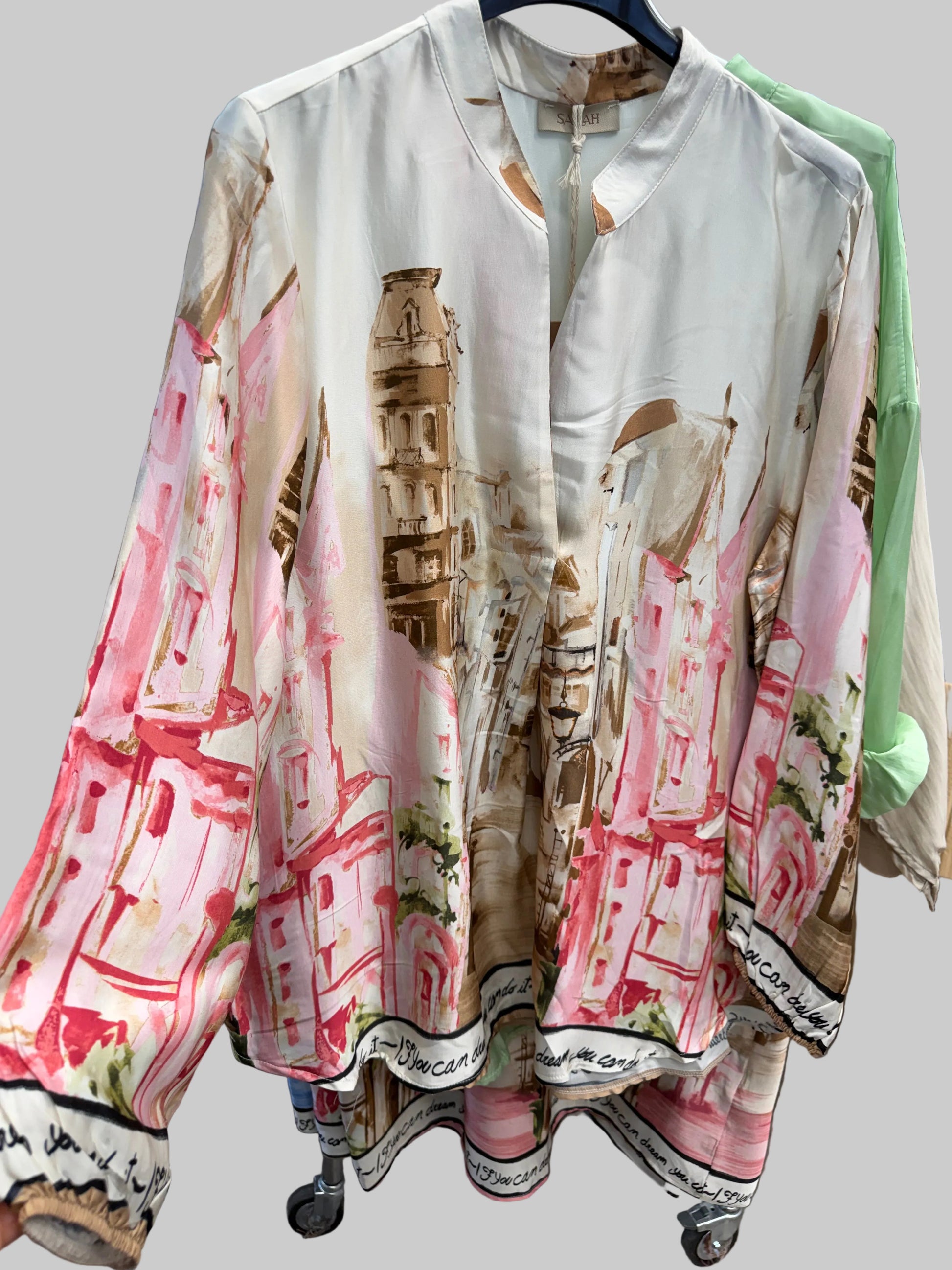 Entdecken Sie die Eleganz und Raffinesse, eine Damenbluse aus glänzendem Seidensatin mit Malereffekt. Die Einheitsgröße passt perfekt zu jeder Figur und der Effekt verleiht dem Blusen-Look das gewisse Etwas. Machen Sie ein Statement mit dieser hochwertigen Bluse.