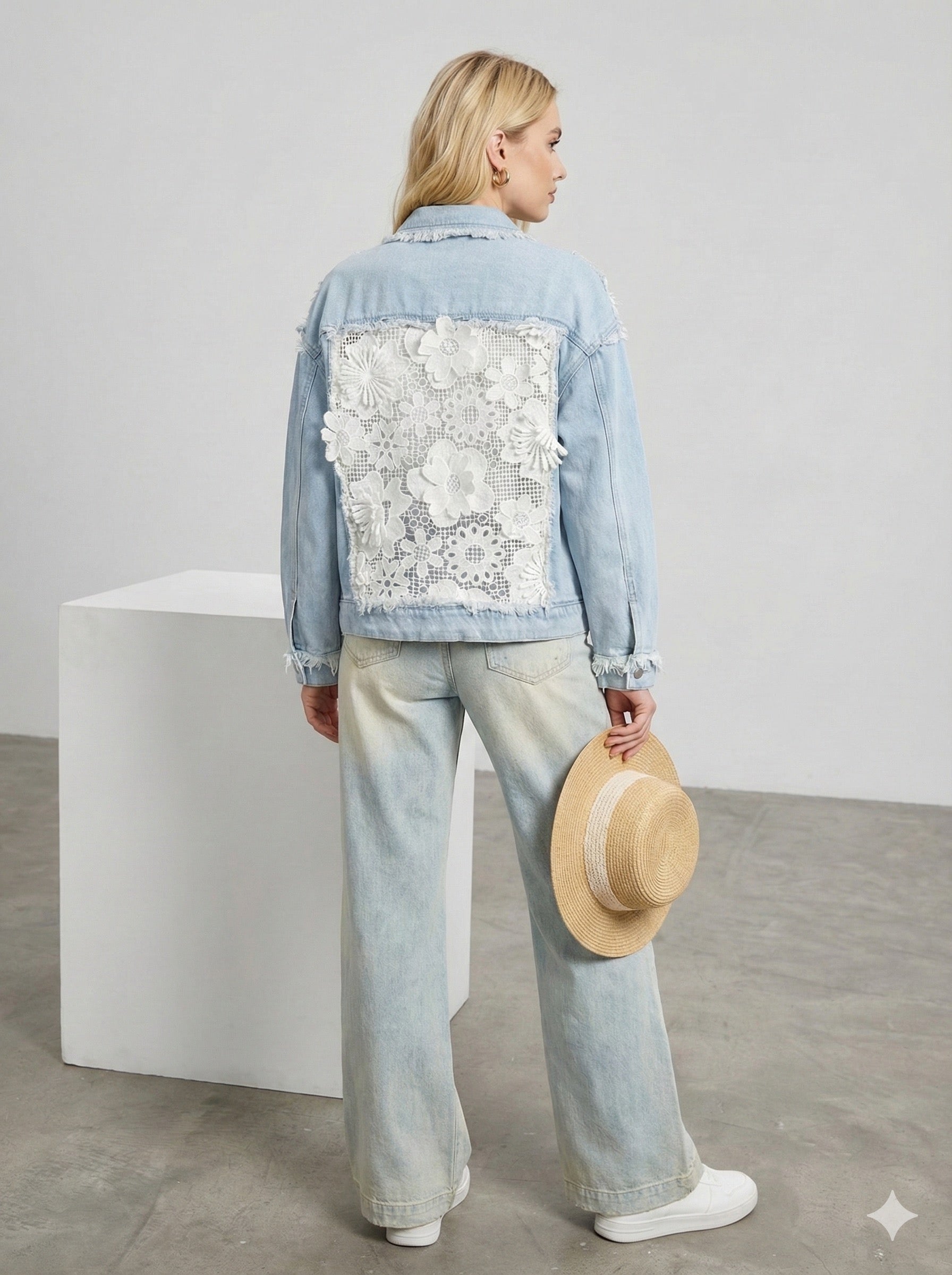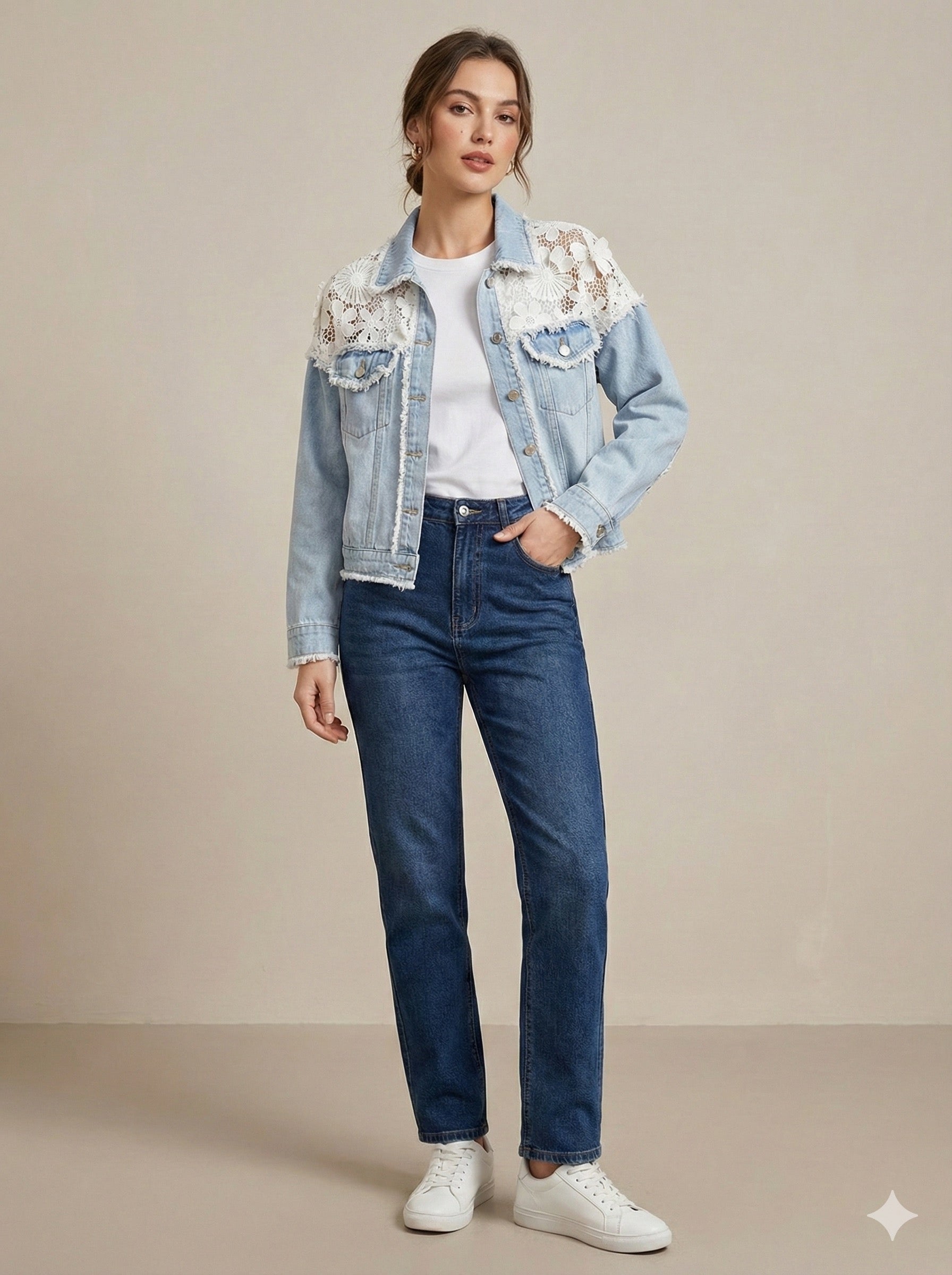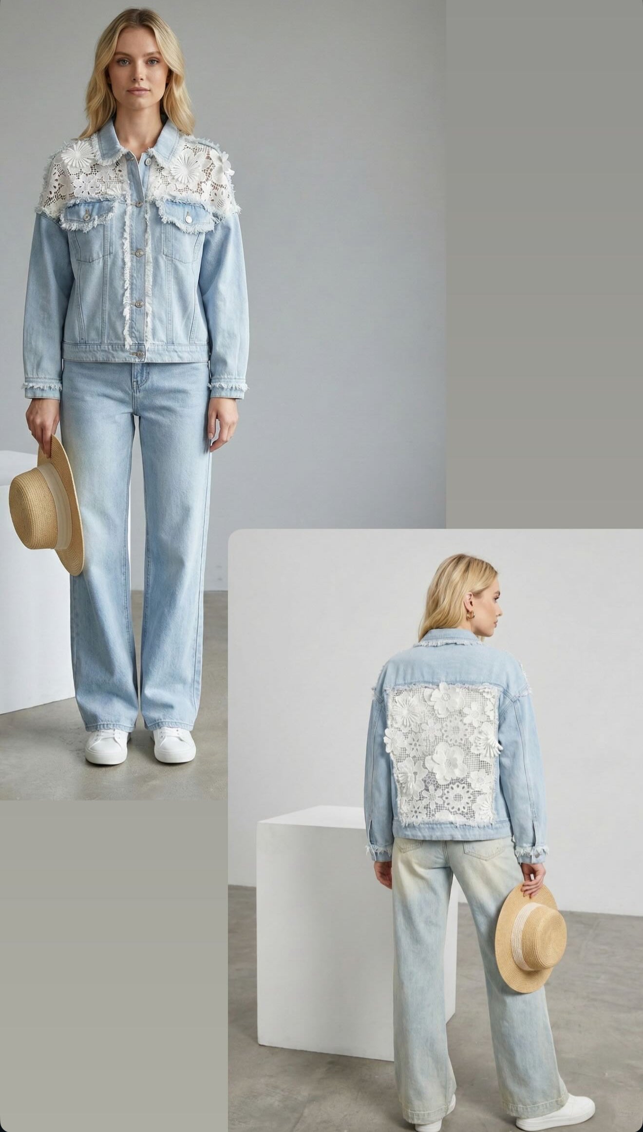 Designer Jeans Jacke Spitze Details S Woman Marke