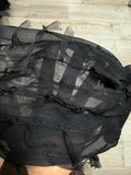 • Extravagante Ärmel: Die halbtransparenten Ballonärmel sind mit filigranen 3D-Applikationen besetzt, die an zarte Blütenblätter oder Blätter erinnern.