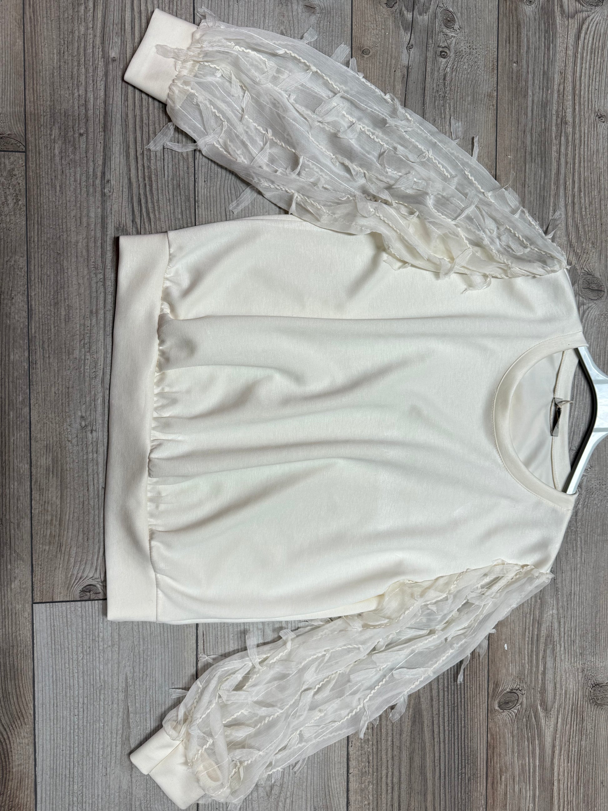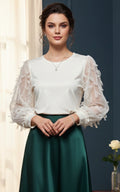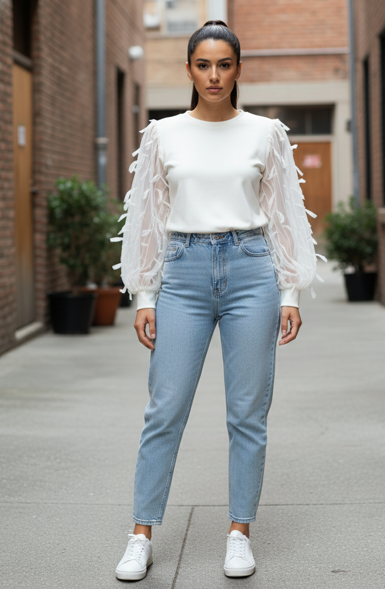 Styling-Tipp: Kombinieren Sie die Bluse mit dezentem Silberschmuck, um den Fokus auf die detailreichen Ärmel zu legen.