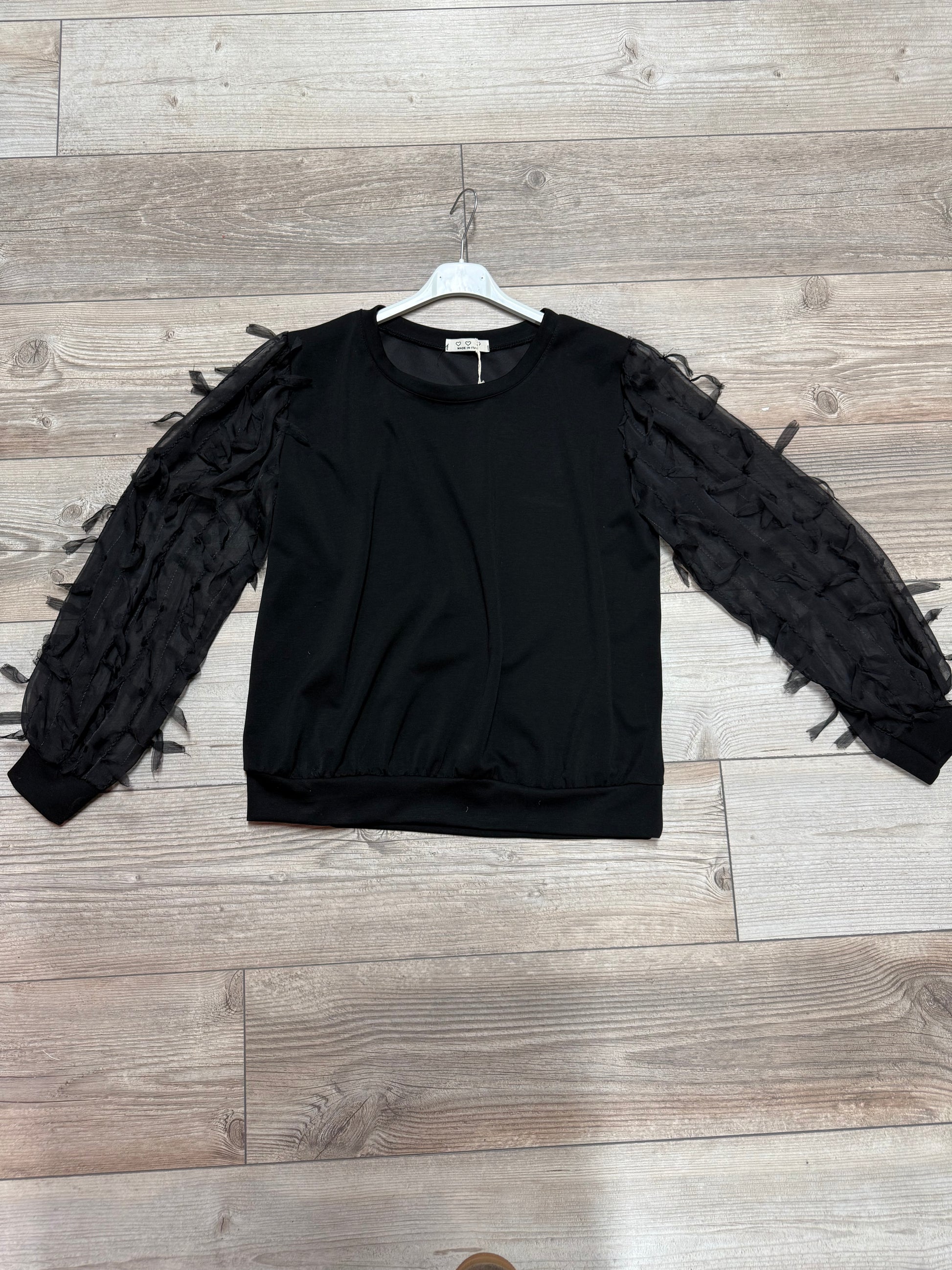Verleihen Sie Ihrem Kleiderschrank einen Hauch von Luxus mit dieser exquisiten Damenbluse. Das minimalistische Design des Oberkörpers bildet den perfekten Kontrast zu den kunstvoll gestalteten Ärmeln.