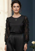 Elegante Damenbluse mit transparenten Applikations-Ärmeln