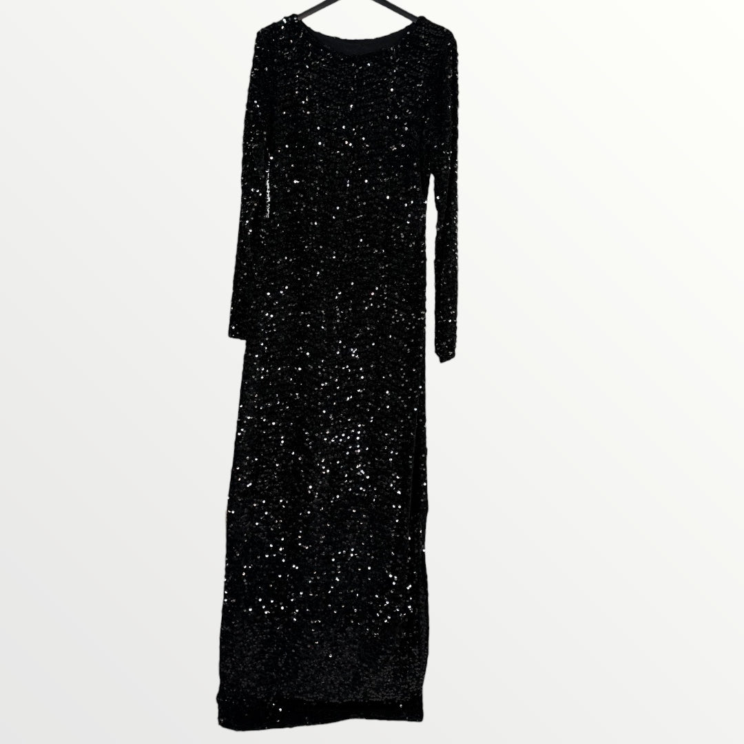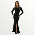 Elegante Samt Pailletten Maxi Kleid mit Schlitz