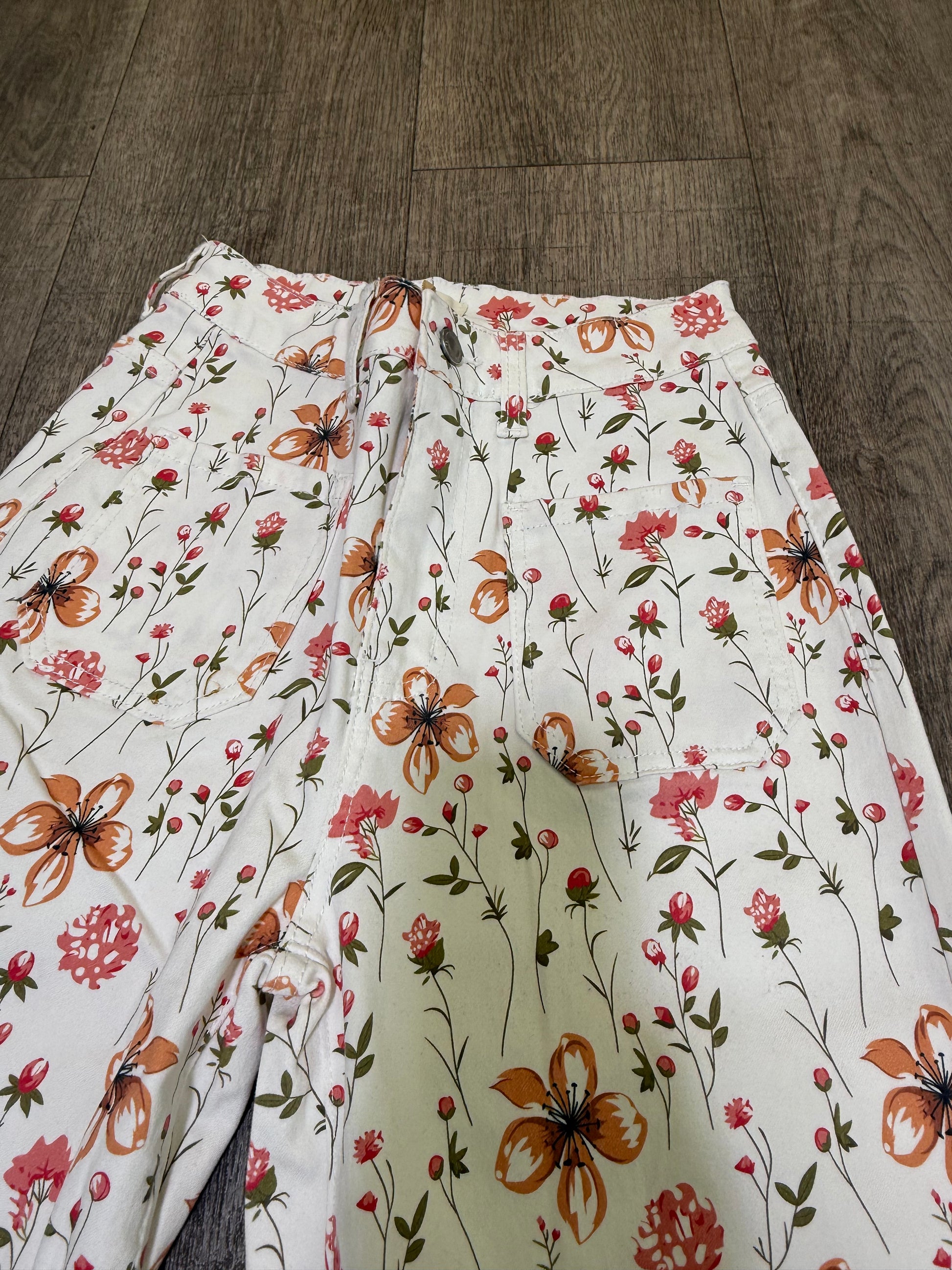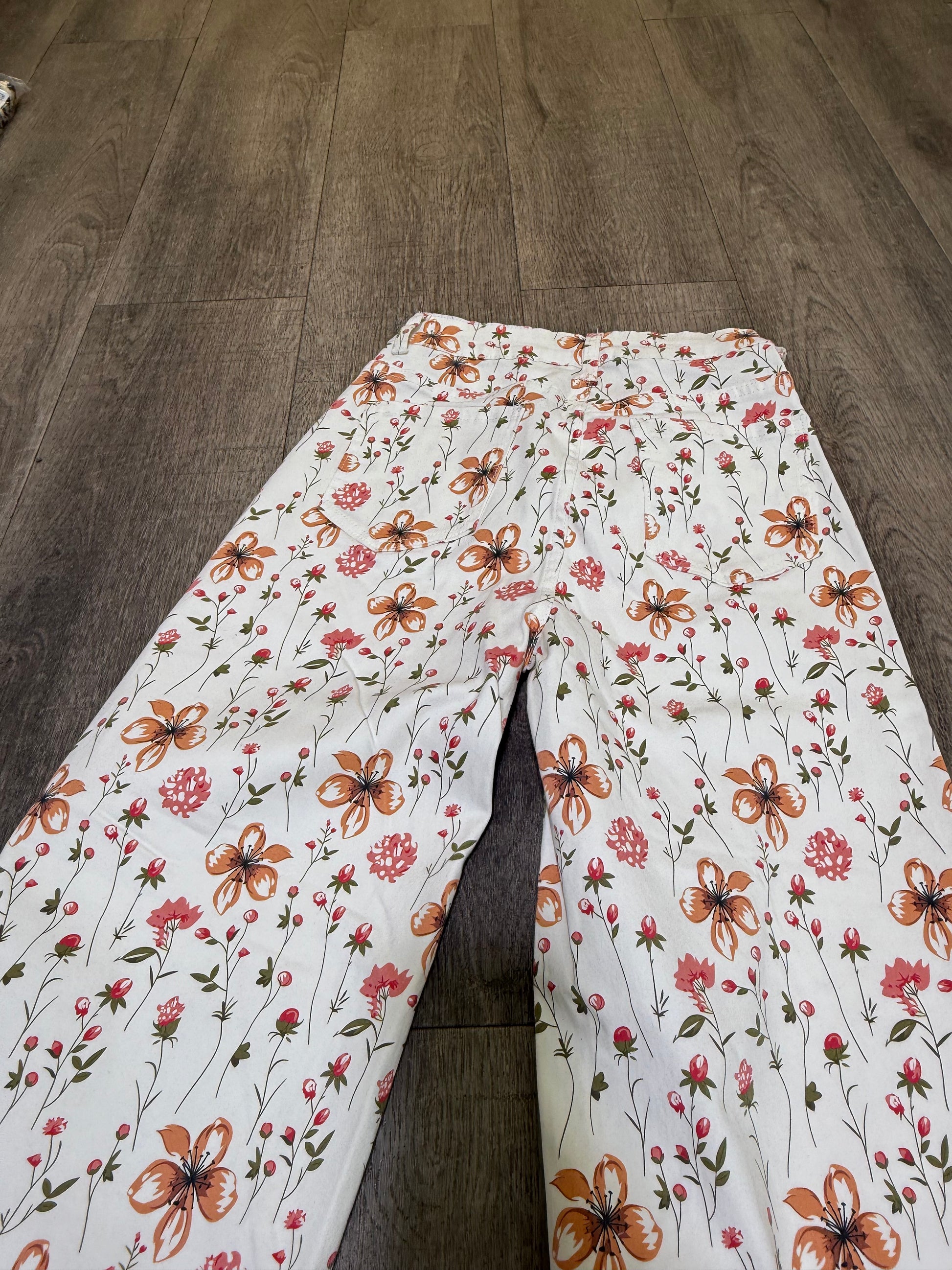 Florale High-Waist-Hose | Frühlingslook Blumen Denim Hose Vintage 111022