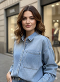 Bringen Sie Glanz in Ihren Alltag! Dieses **Jeanshemd mit funkelnden Strass-Details** (Glitzer-Nieten) ist der perfekte Mix aus Lässigkeit und Eleganz. Inspiriert von moderner Streetwear, lässt es sich vielseitig kombinieren – ob geschlossen als Hemd oder offen als lässige Jacke.