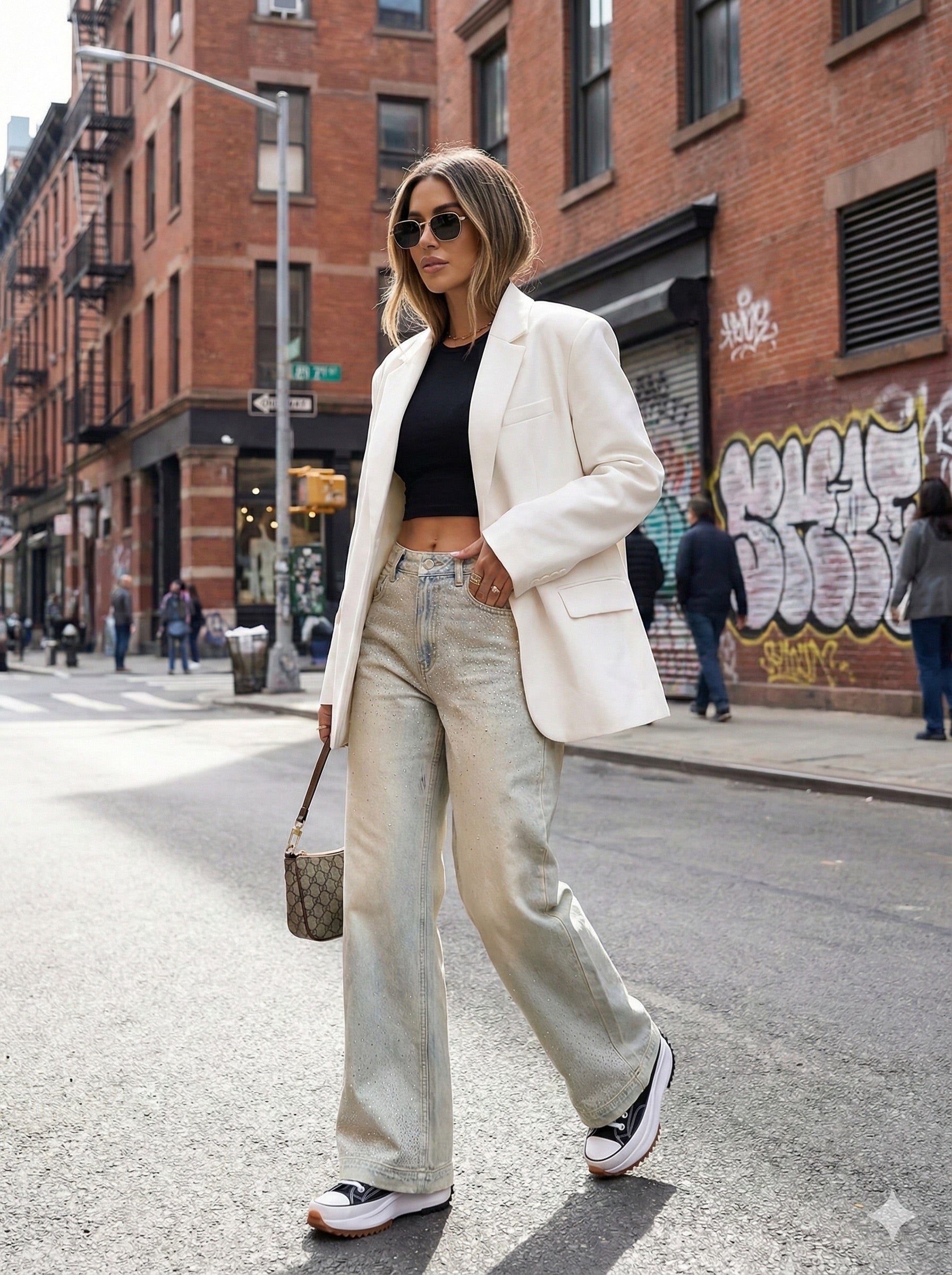 Diese modische Jeans kombiniert Eleganz und Stil mit einem einzigartigen nieten und funkelnden Stickereien. Ob casual oder chic – sie ist die perfekte Wahl für jede Gelegenheit.