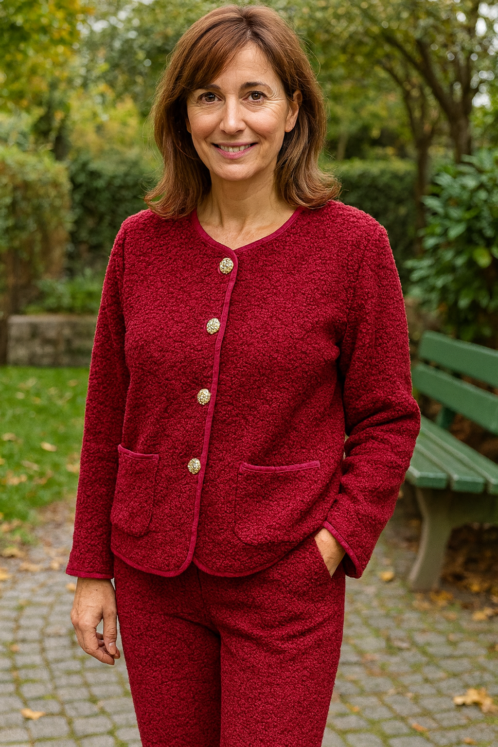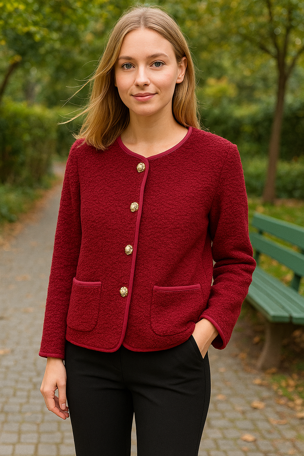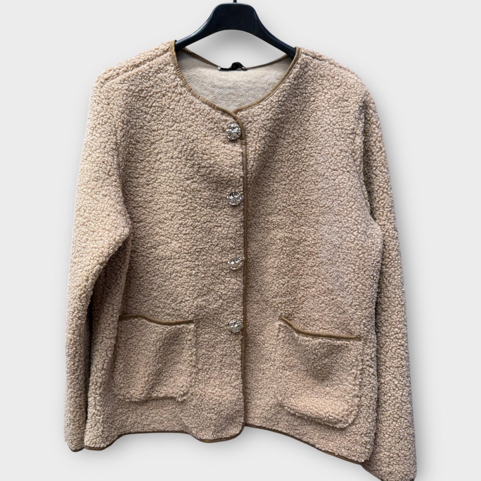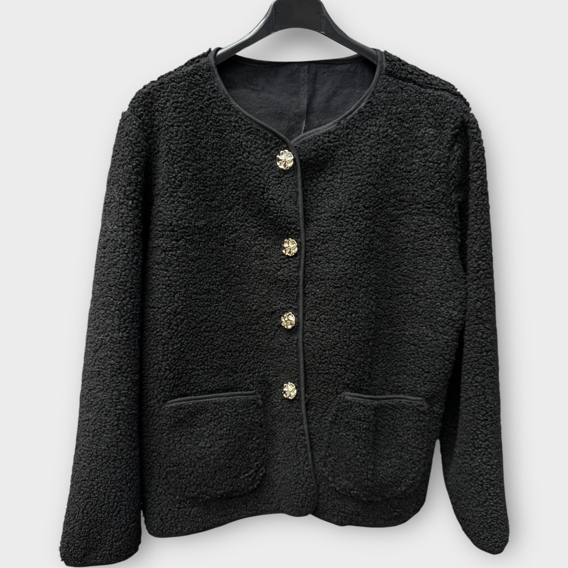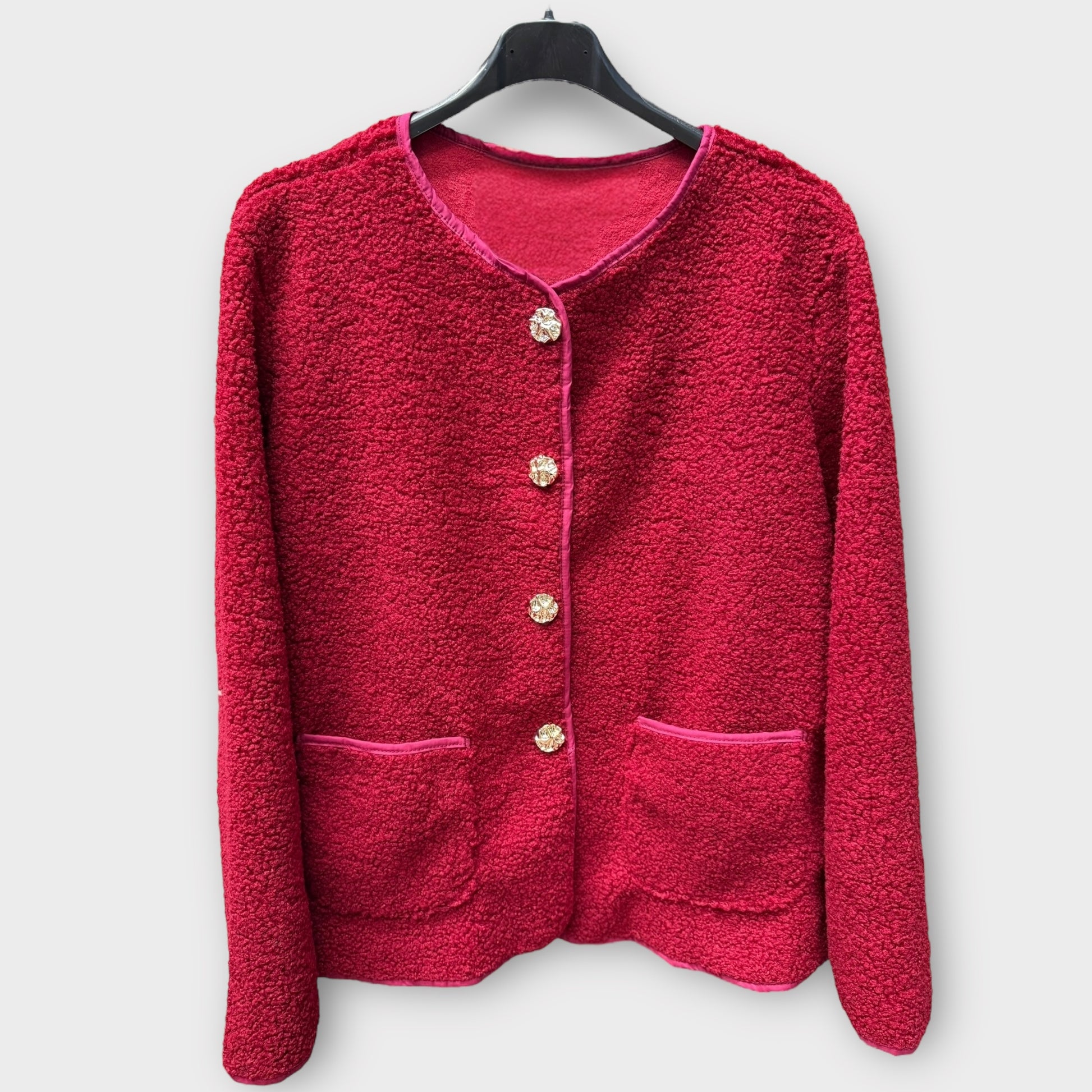 Gold Knöpfe Details Jacke Teddy Bouclé Bordoux
