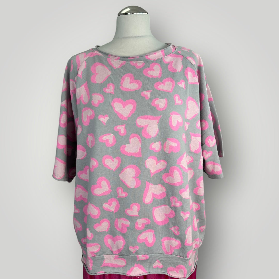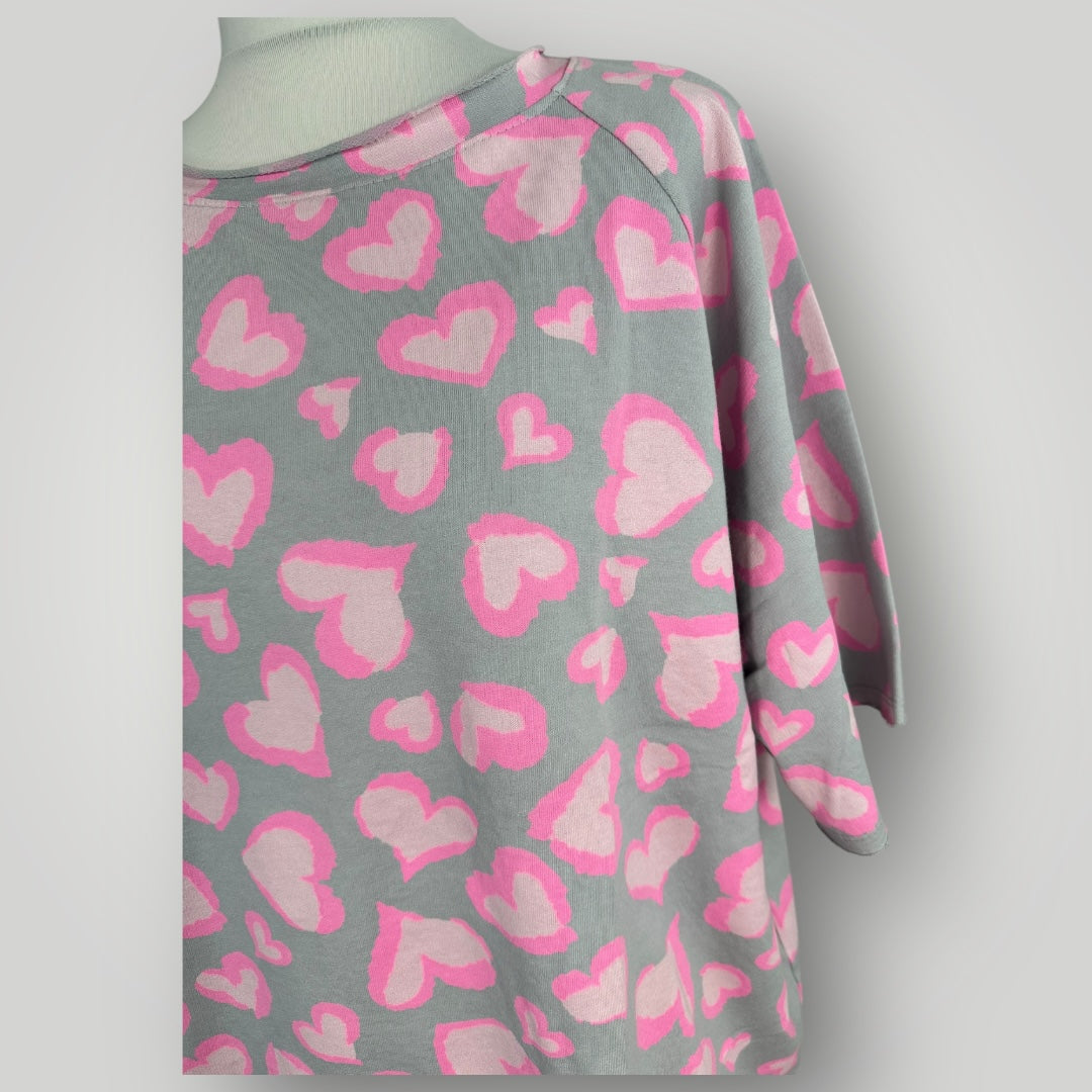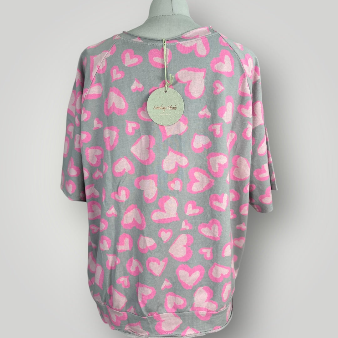 Herz Leopard T-shirt Baumwolle Grau Pink