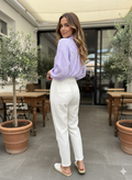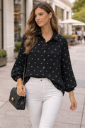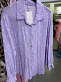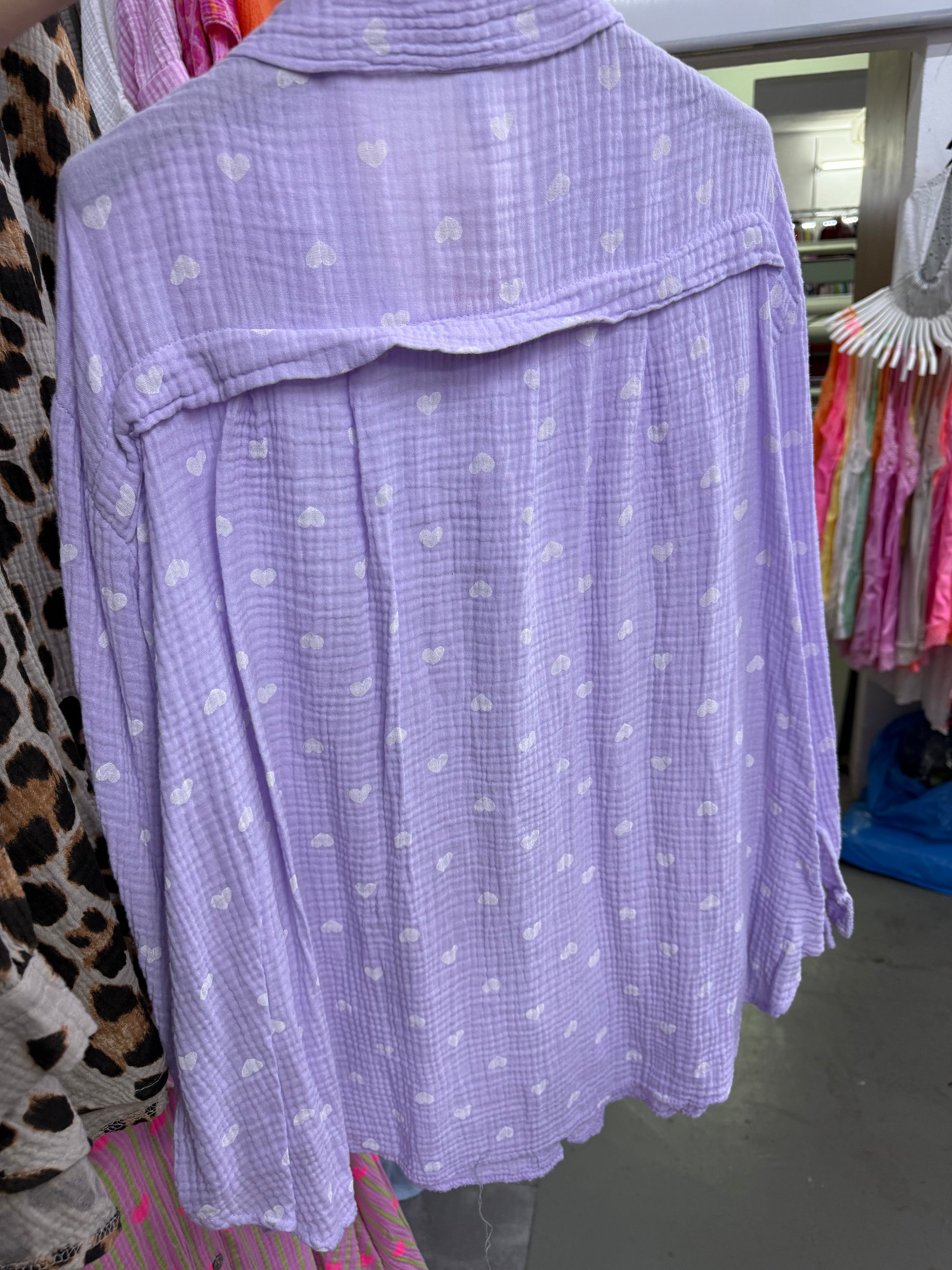 Herz print Musselin Hemd Bluse Kurz , Lila