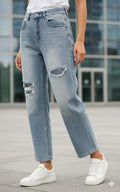 Zeitlose Jeans Hose Nieten gerissen MC - 5267