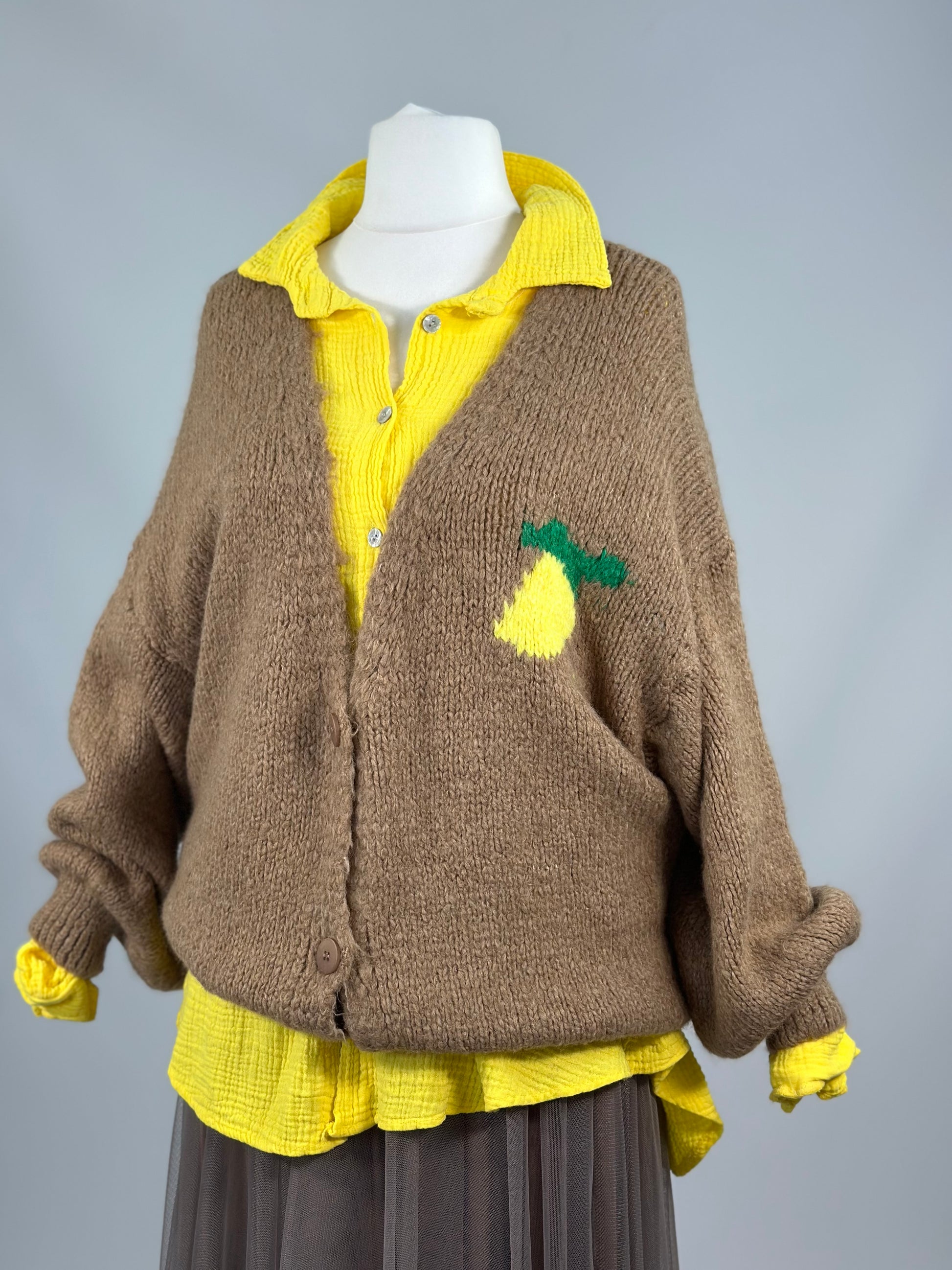 Kuschelig Lemon Strick Jacke mit knöpfe 3 Saisons