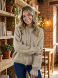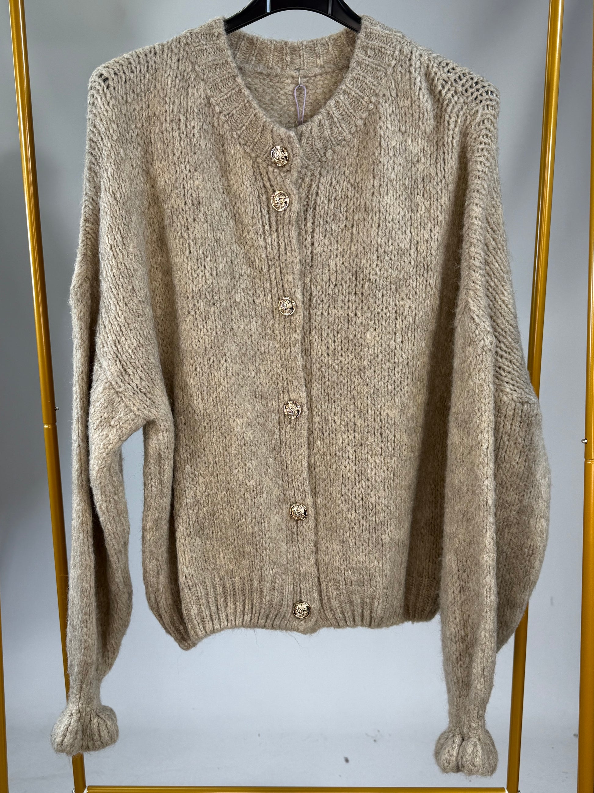 Kuschelig Strick Jacke Goldknöpfe 3 Saisons Dunkel Beige