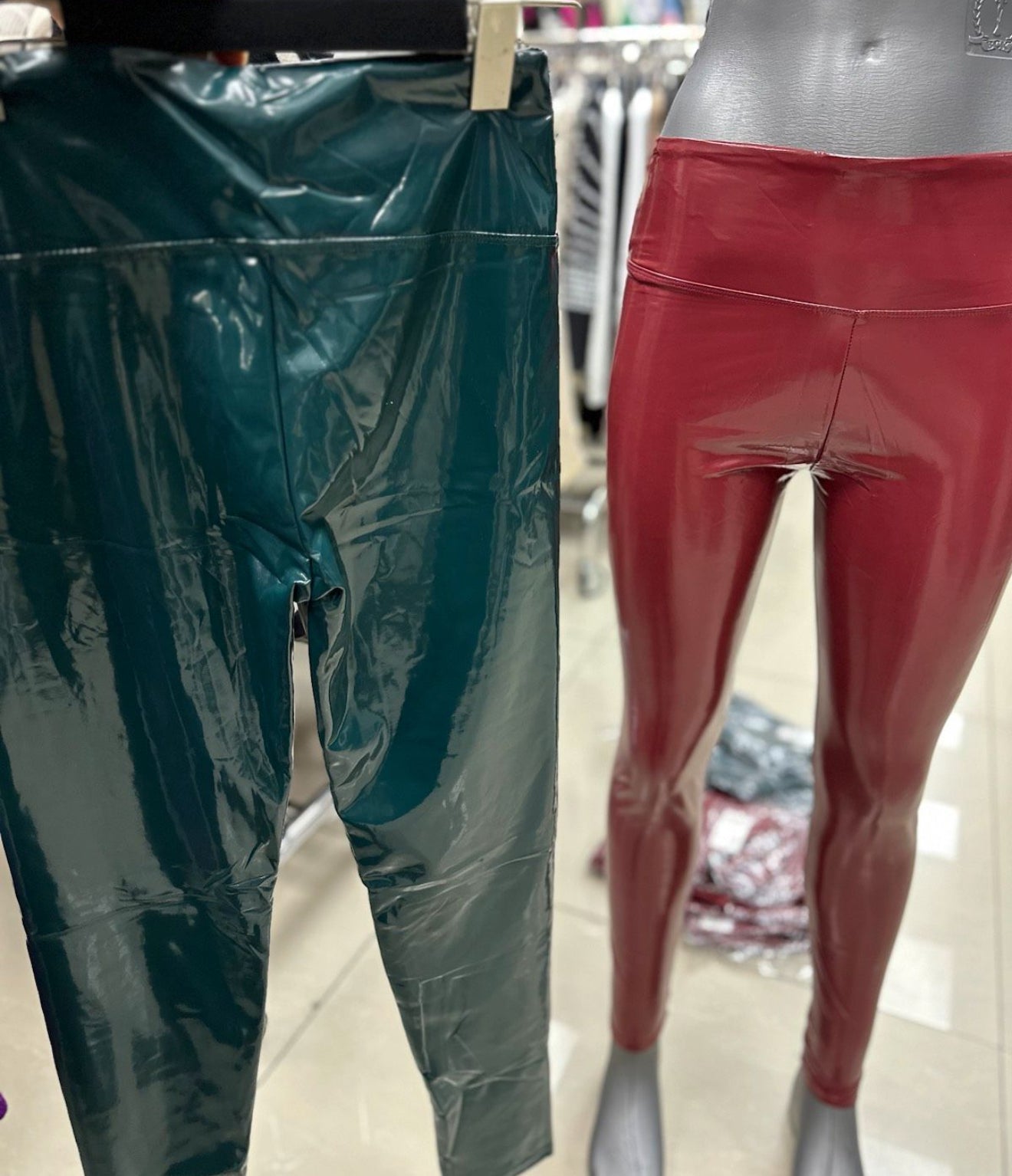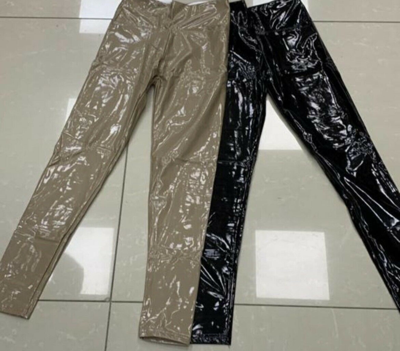 Latex Lack Edel Leggings Pu Leder Schwarz Rot Grün Beige