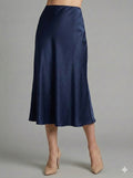 Maxi Rock Satin glänzend Marineblau