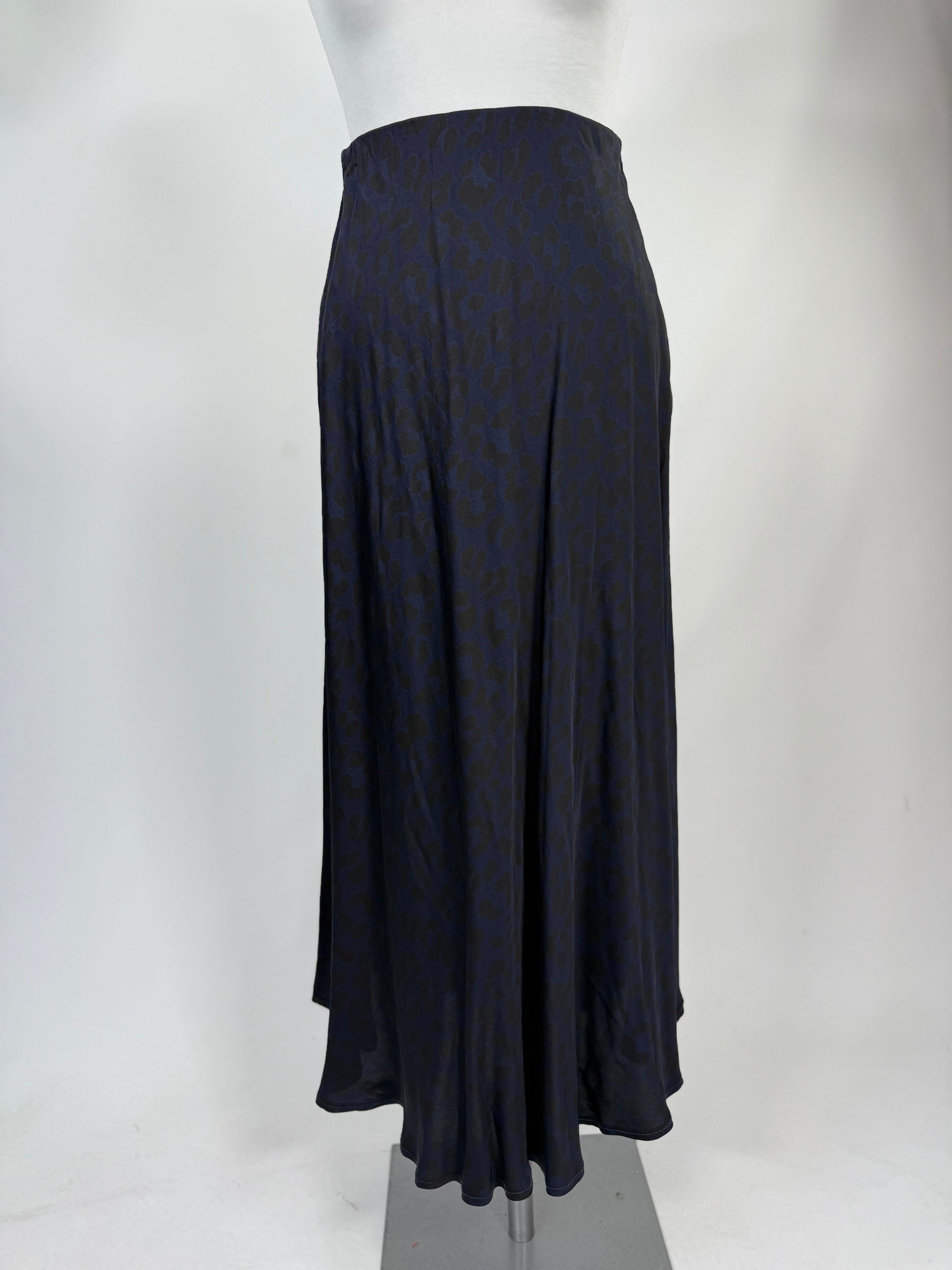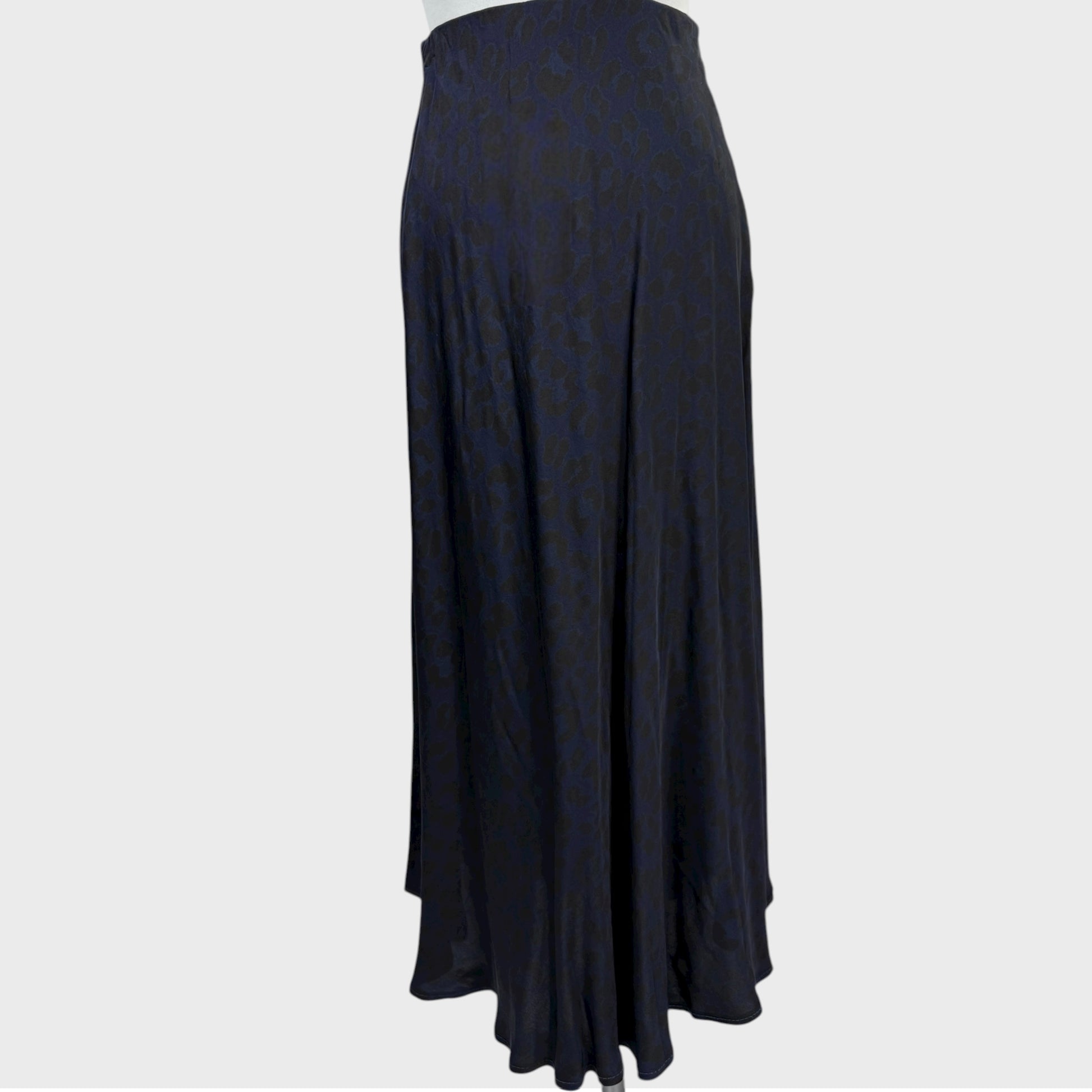Seide Satin Maxi Rock Leopard Marineblau