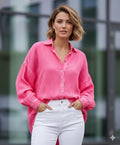 Musselin Bluse lang, neonpink