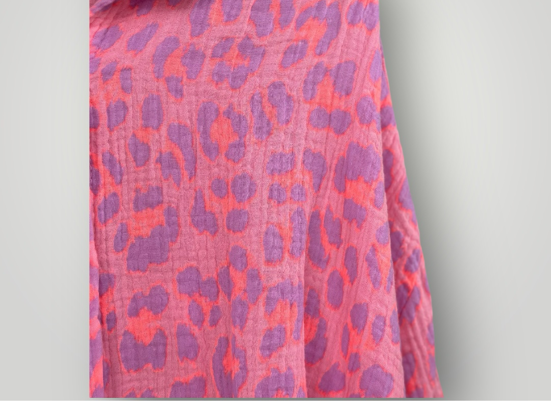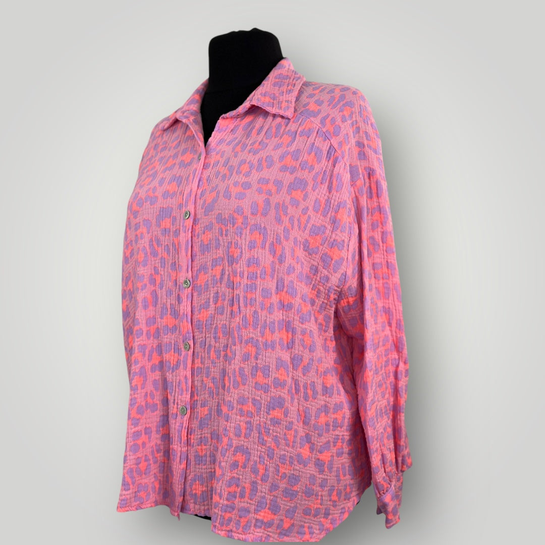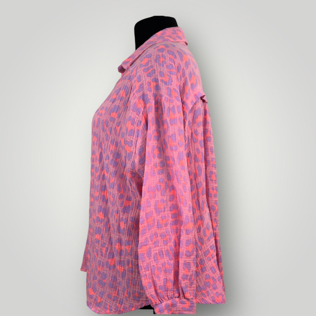 Musselin Leopard Hemd Bluse Neon Pink Orange Lila Kurz