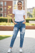 Diese modische Jeans kombiniert Eleganz und Stil mit einem einzigartigen Herz-Patchwork und funkelnden Stickereien. Ob casual oder chic – sie ist die perfekte Wahl für jede Gelegenheit.