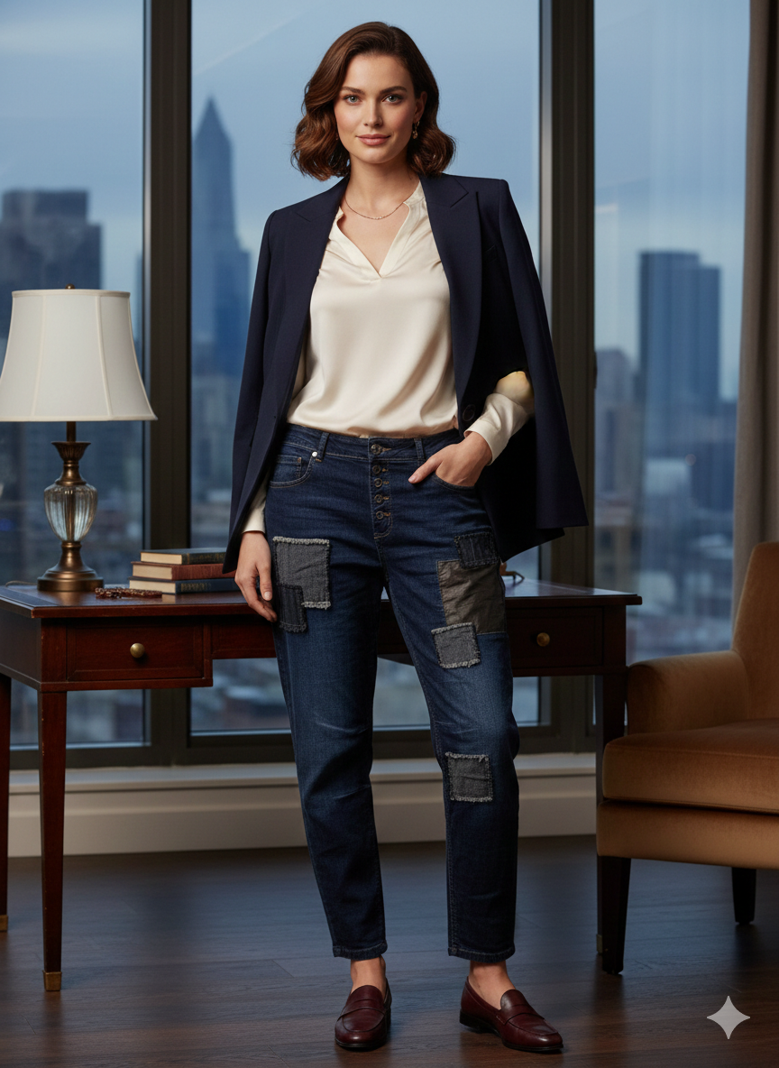 Diese modische Jeans kombiniert Eleganz und Stil mit einem einzigartigen Herz-Patchwork und funkelnden Stickereien. Ob casual oder chic – sie ist die perfekte Wahl für jede Gelegenheit.