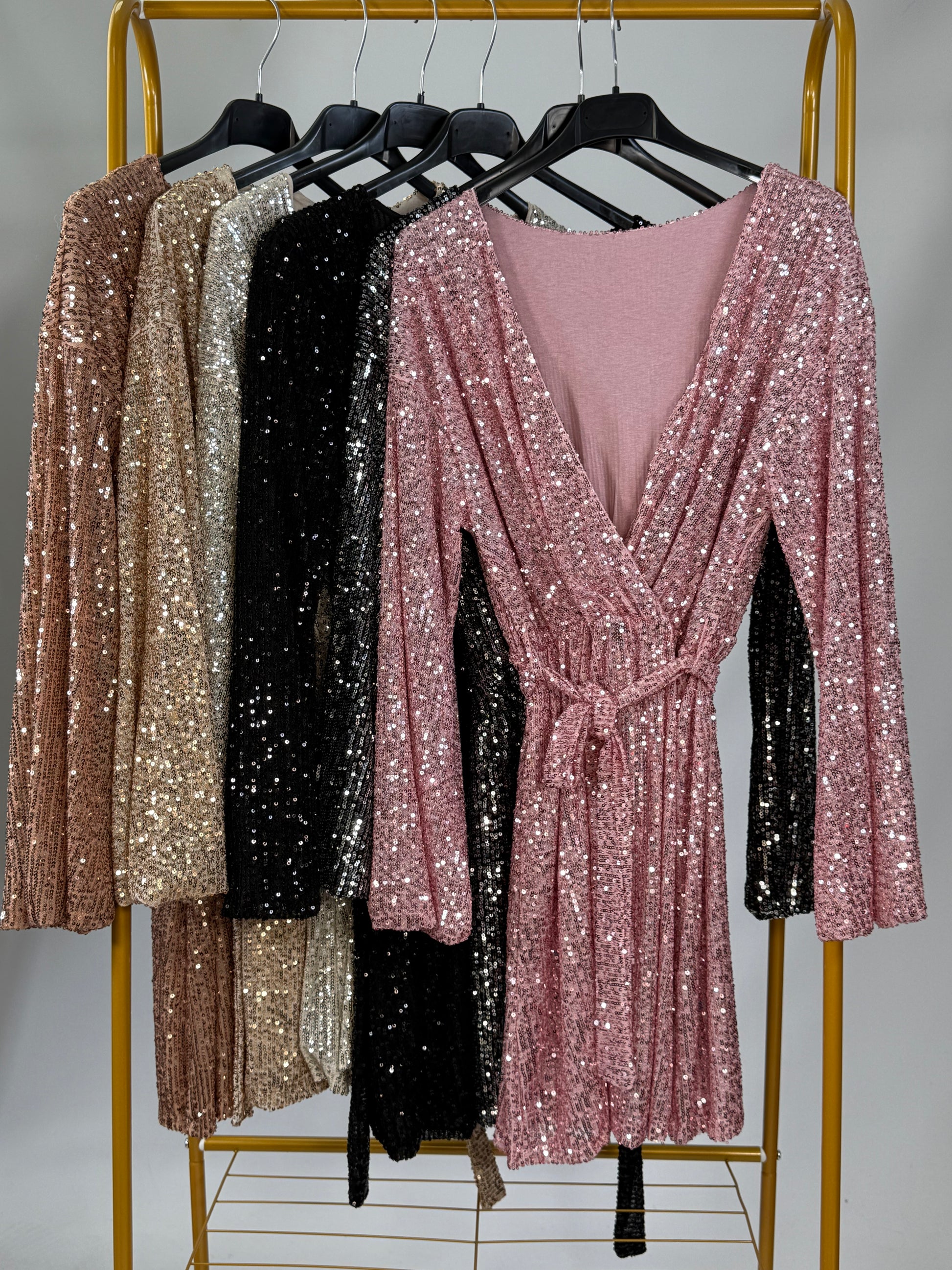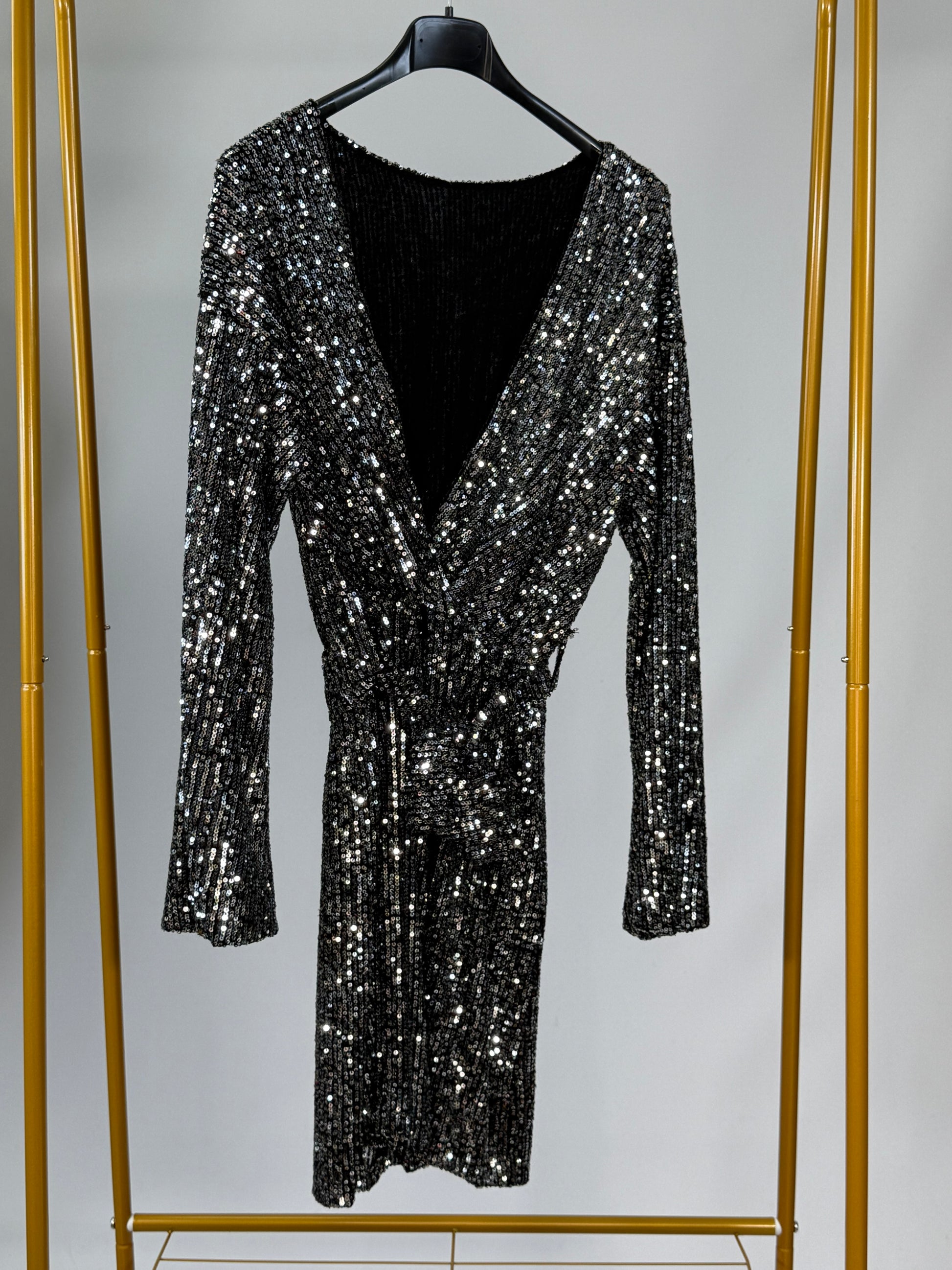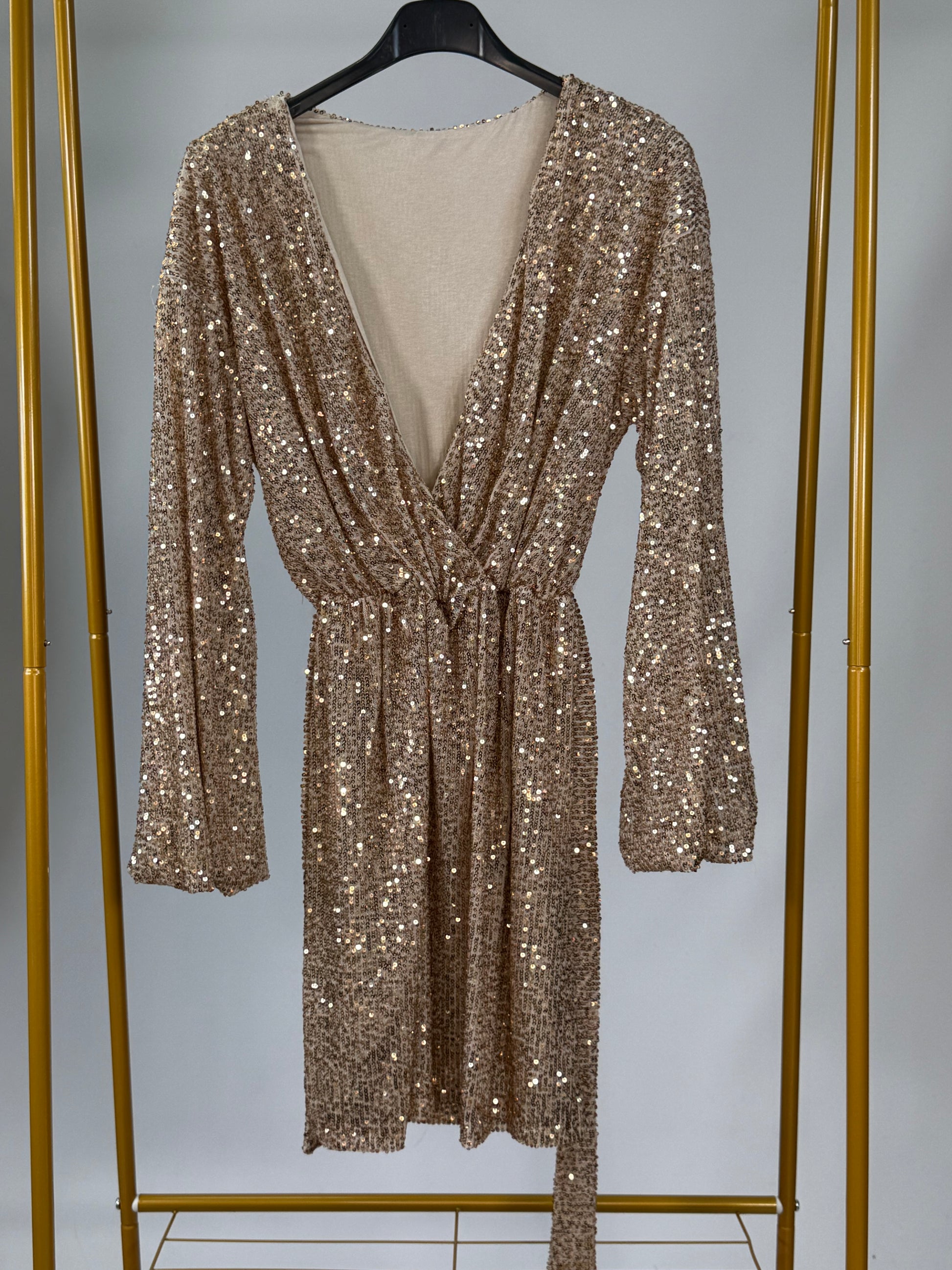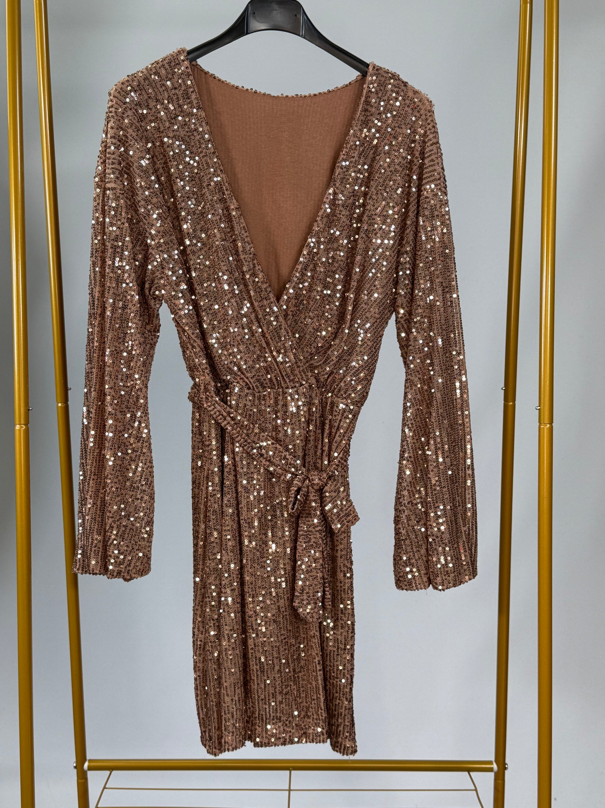 - Das Pailletten Kleid mit Wickel Details lässt dich strahlen und schmeichelt deiner Figur.