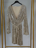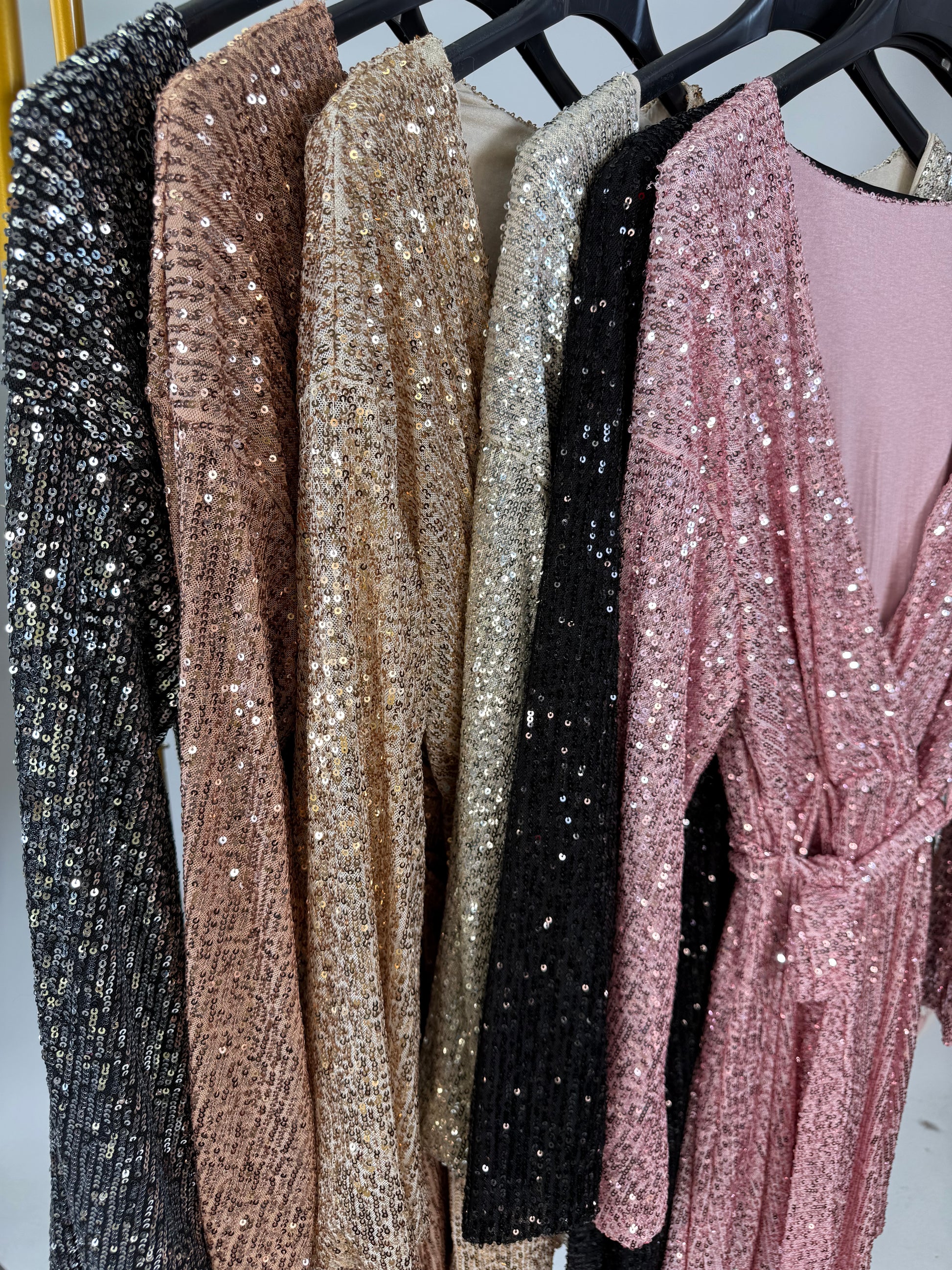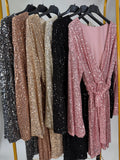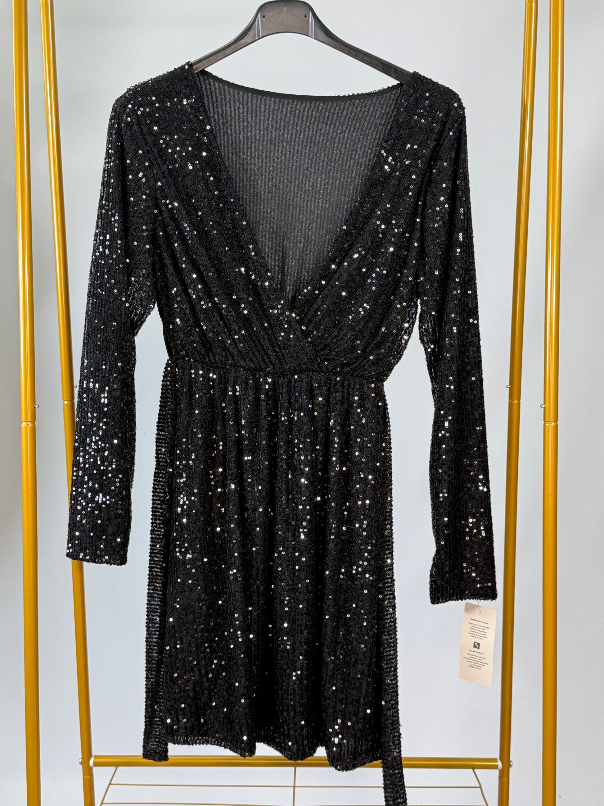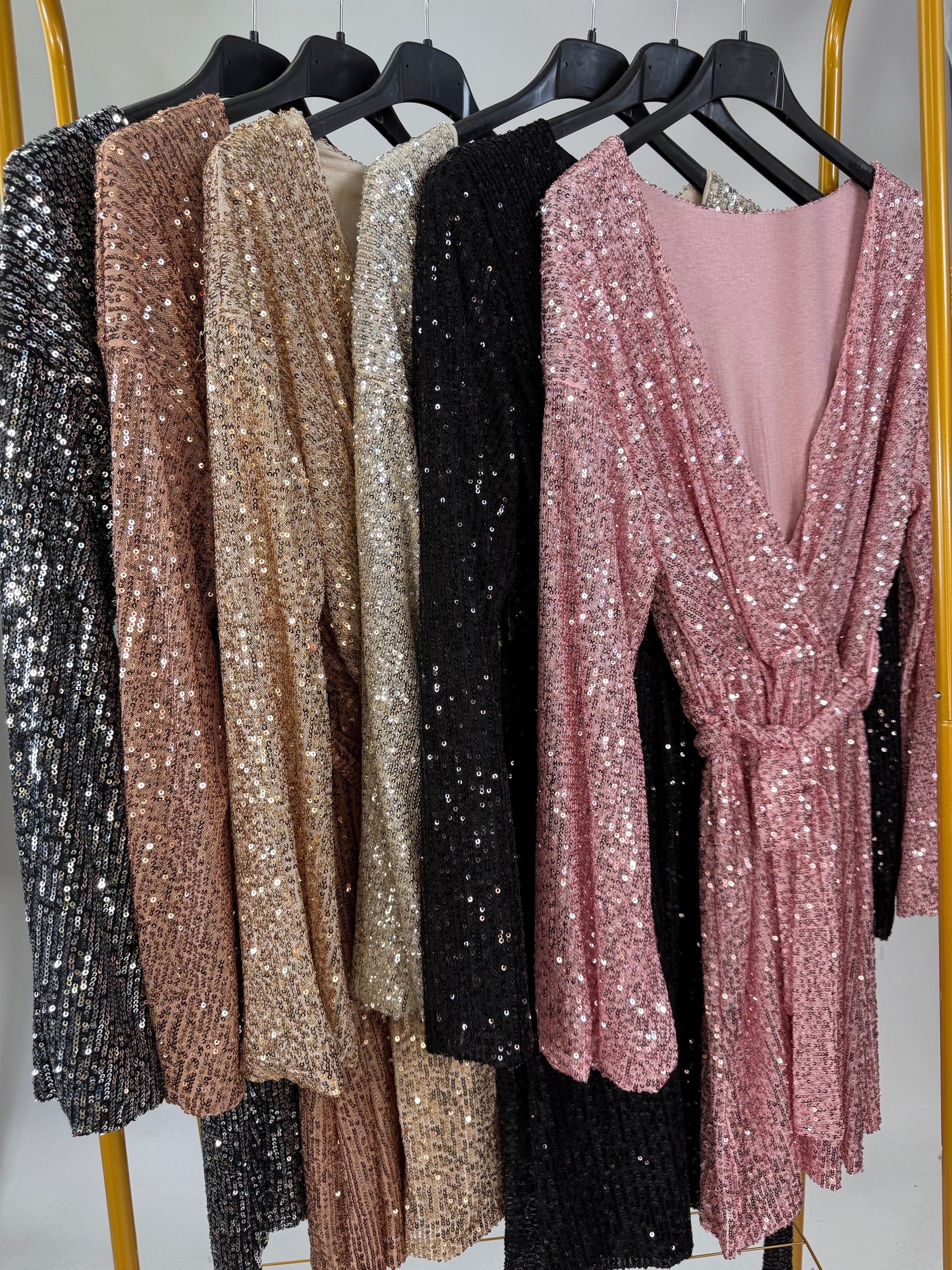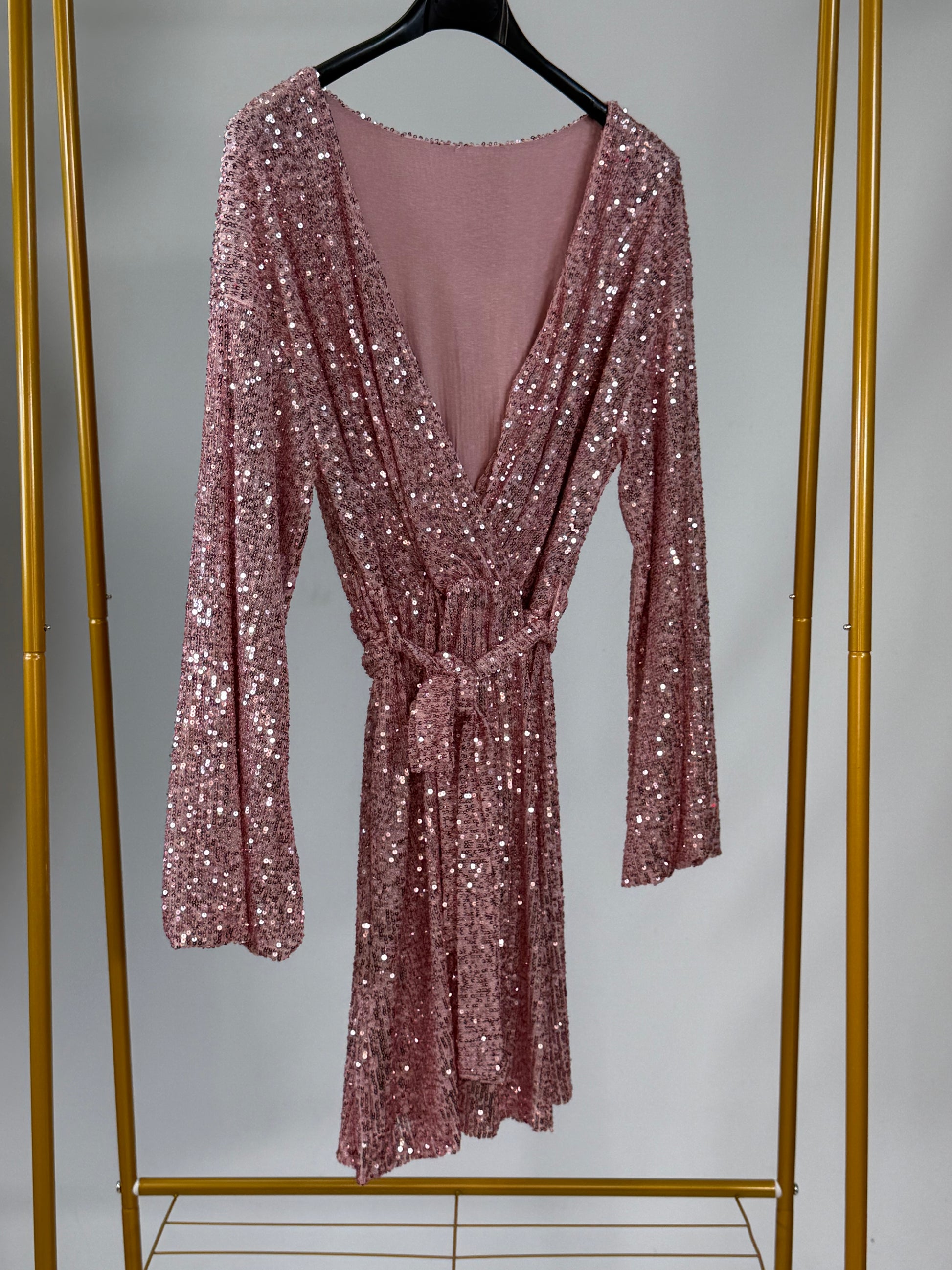 - Das Pailletten Kleid mit Wickel Details lässt dich strahlen und schmeichelt deiner Figur.