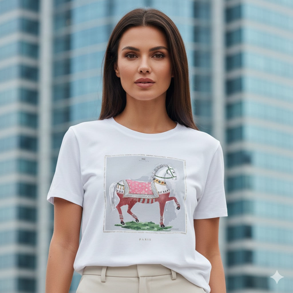 Pferde mit Strassstein T-shirt Baumwolle Horse