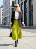 Dieser elegante Plissee Rock vereint Komfort und Stil in perfekter Harmonie.