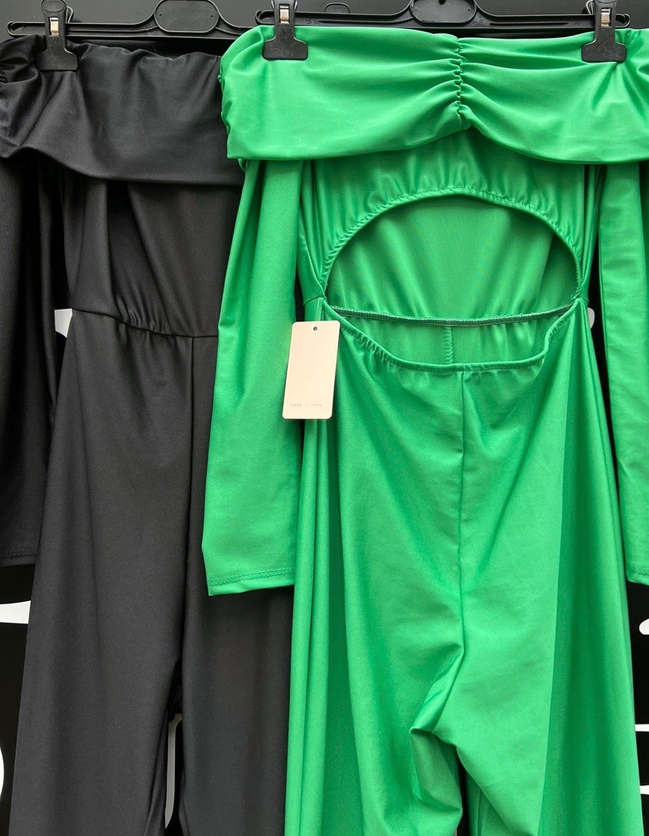 Sexy Overal Jumpsuit figurbetonte Schwarz & Grün