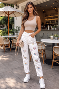 Diese modische Jeans kombiniert Eleganz und Stil mit einem einzigartigen Herz-Patchwork und funkelnden Stickereien. Ob casual oder chic – sie ist die perfekte Wahl für jede Gelegenheit.