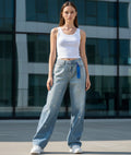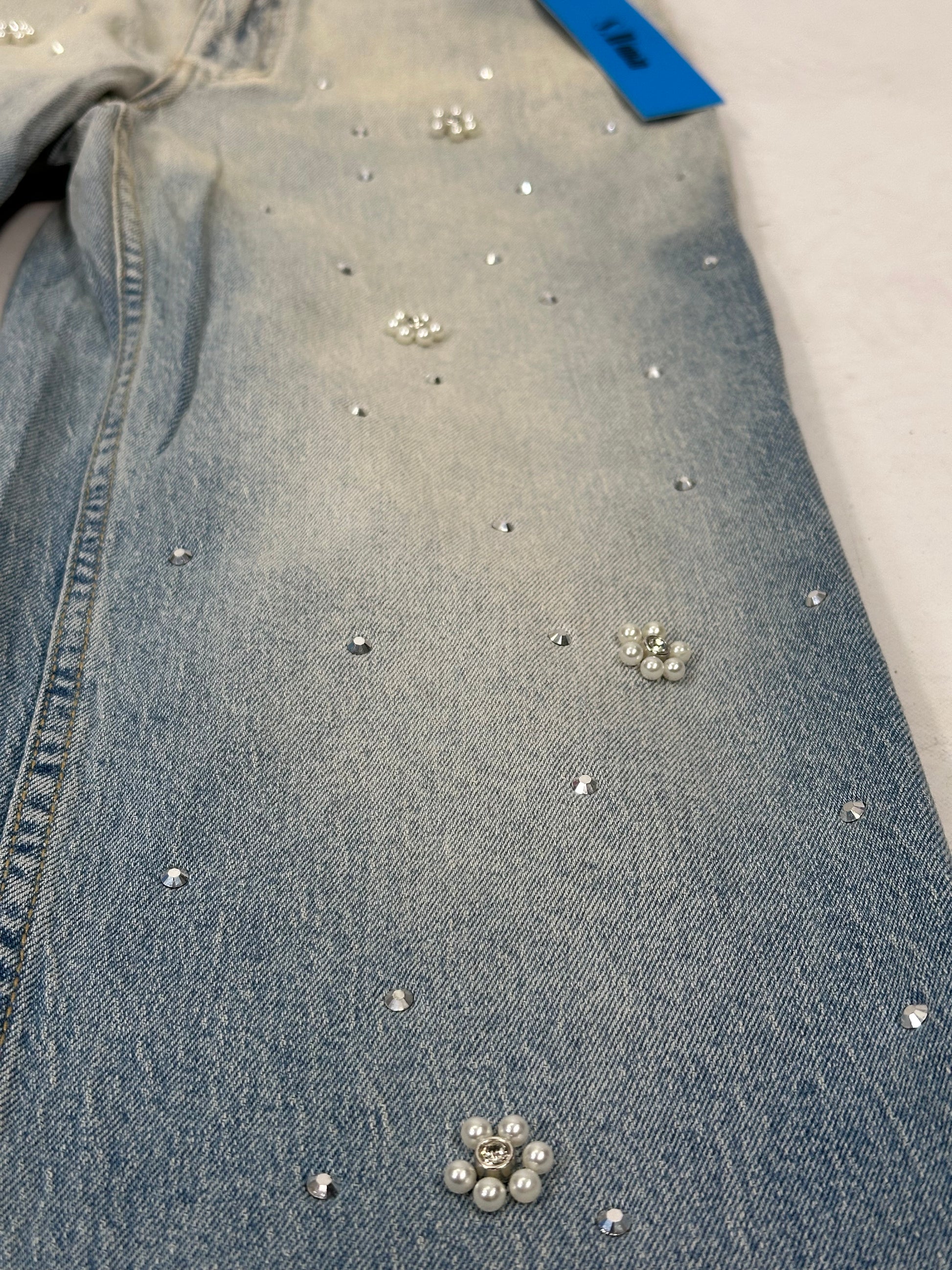 Sexy Woman Jeans Hose Perle Nieten weite Bein sw 1415