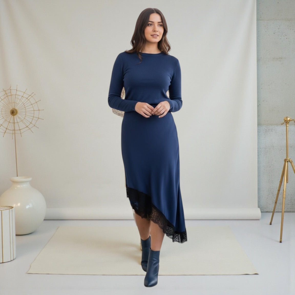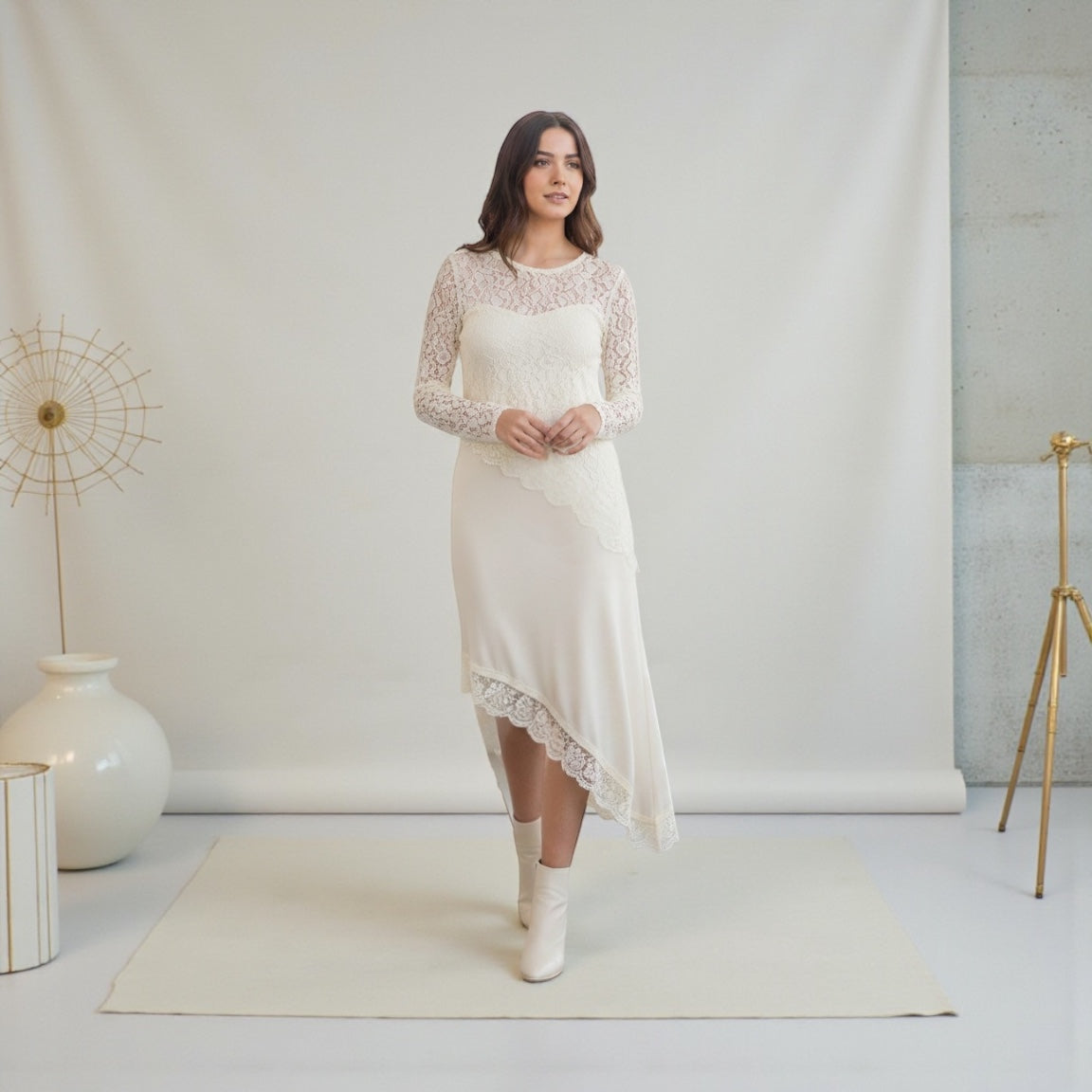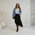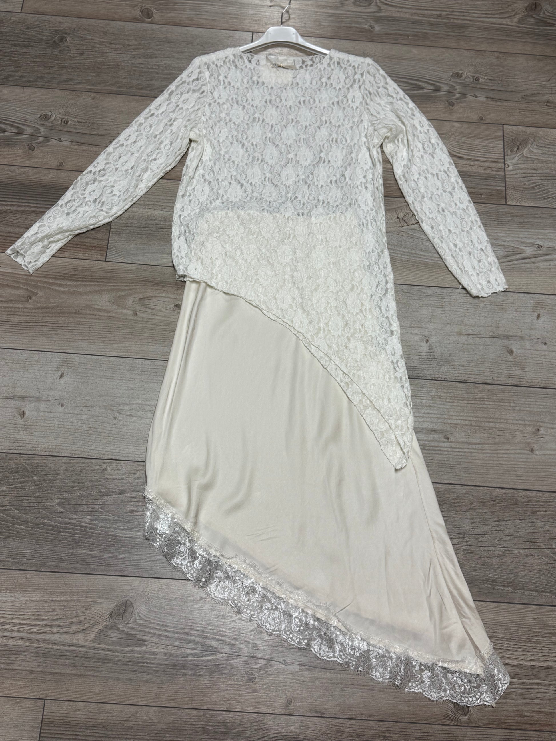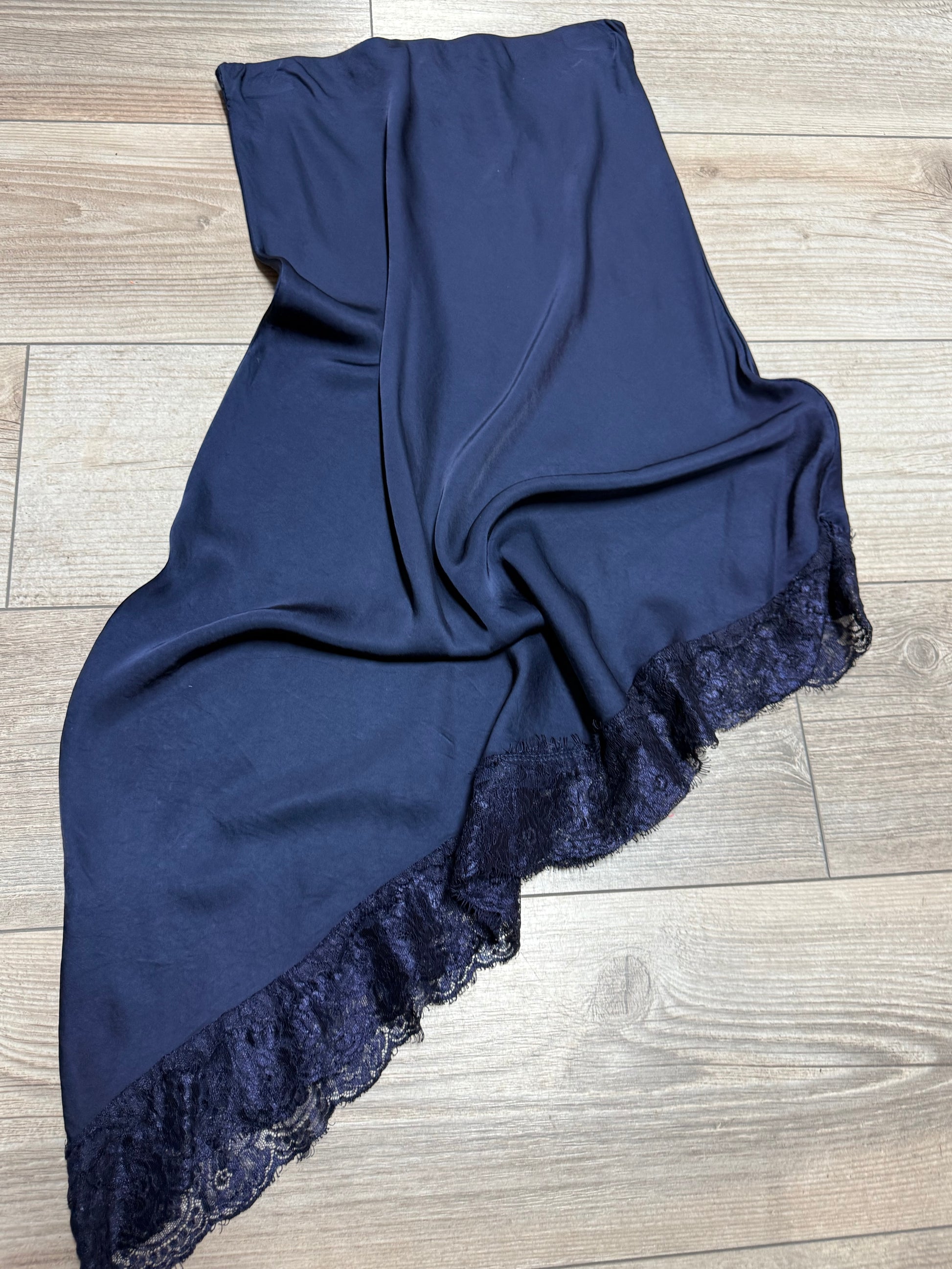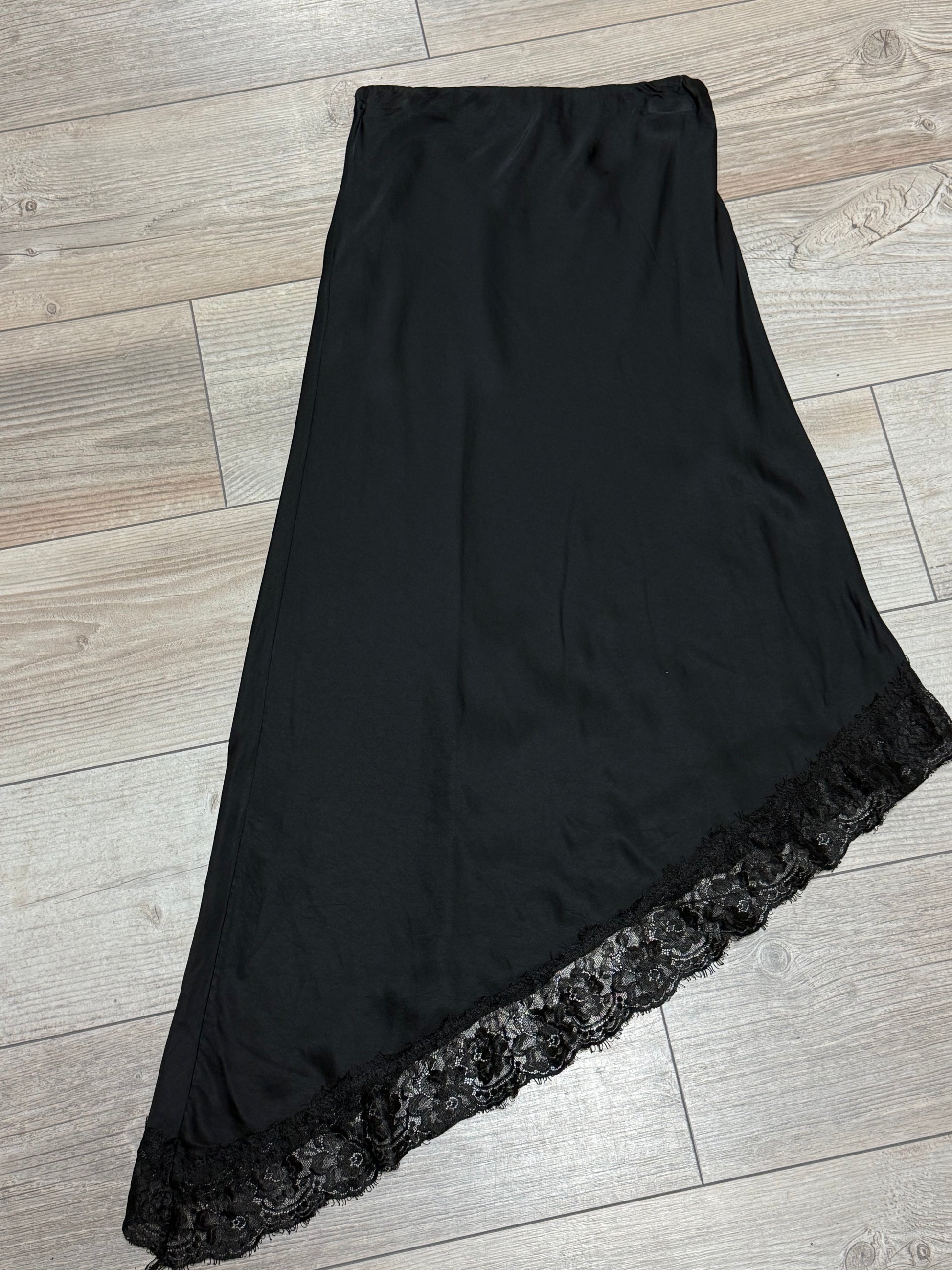 Spitze Maxi Satin Rock asymmetrisch Schnitt