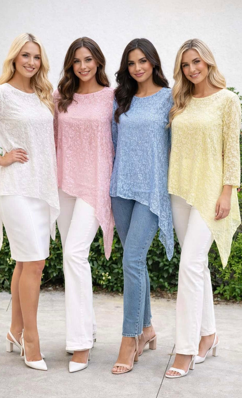 Spitze Tunika Oberteil asymmetrisch schnitt