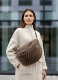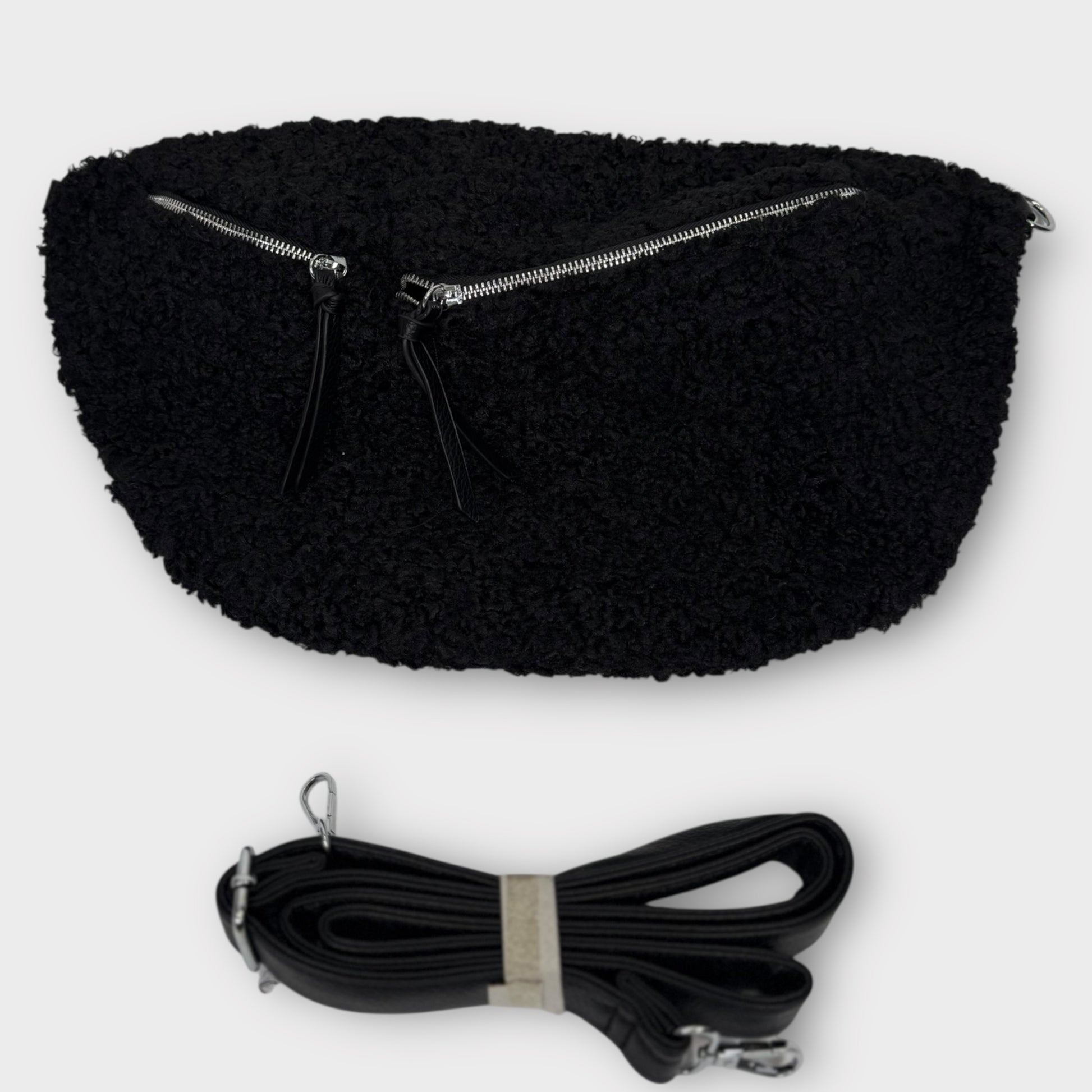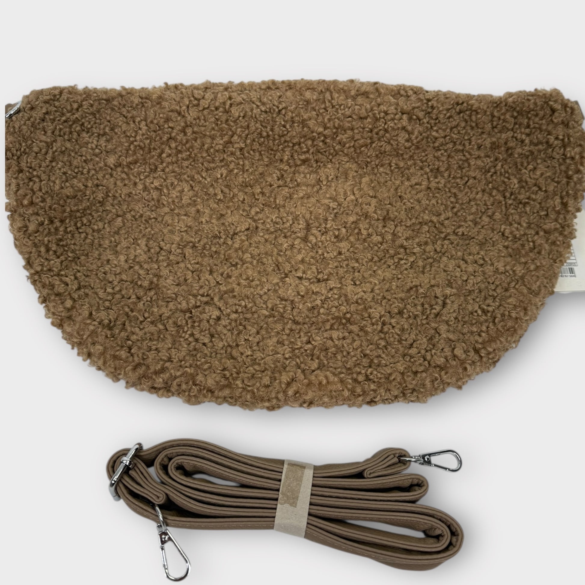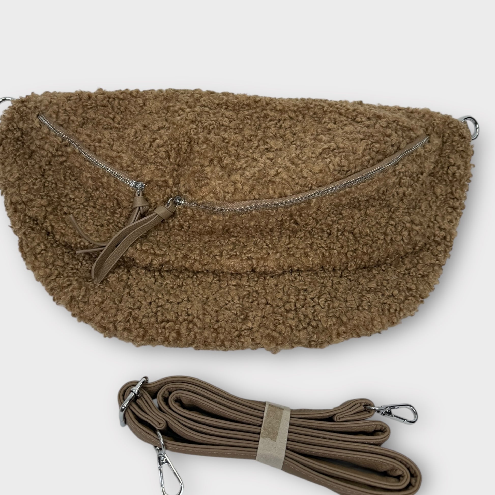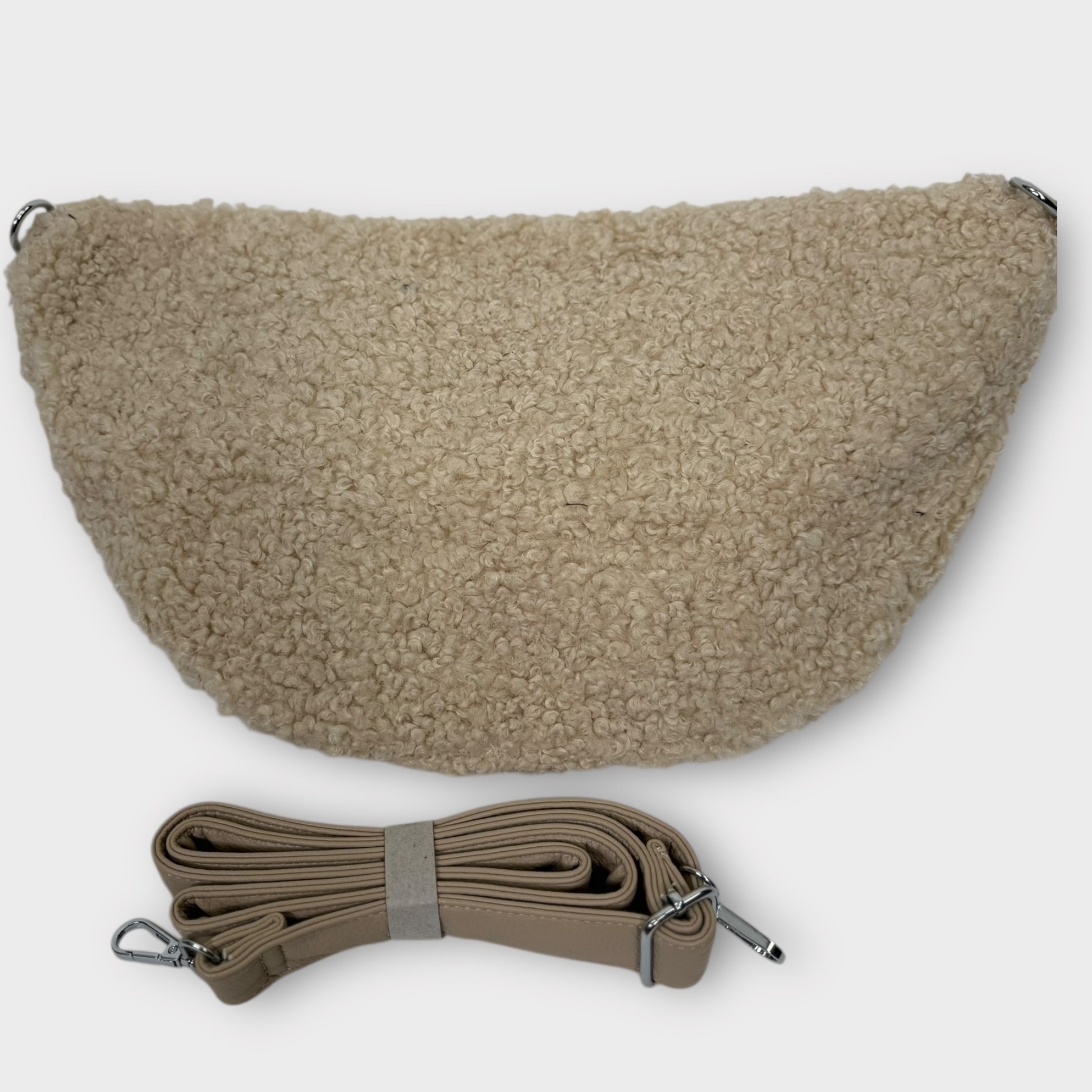 Teddy Crossbody Tasche XXL Taupe Beige schwarz Creme