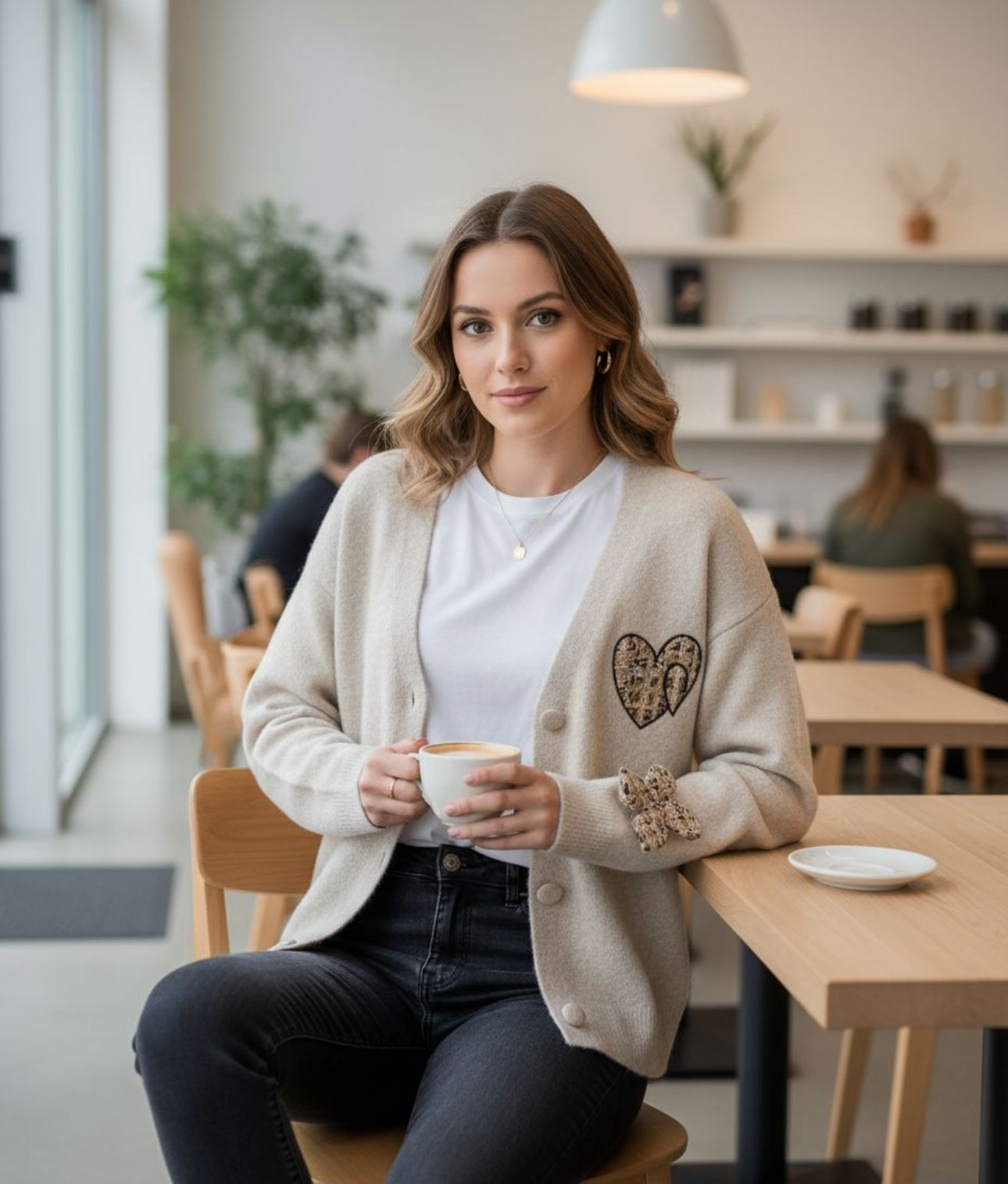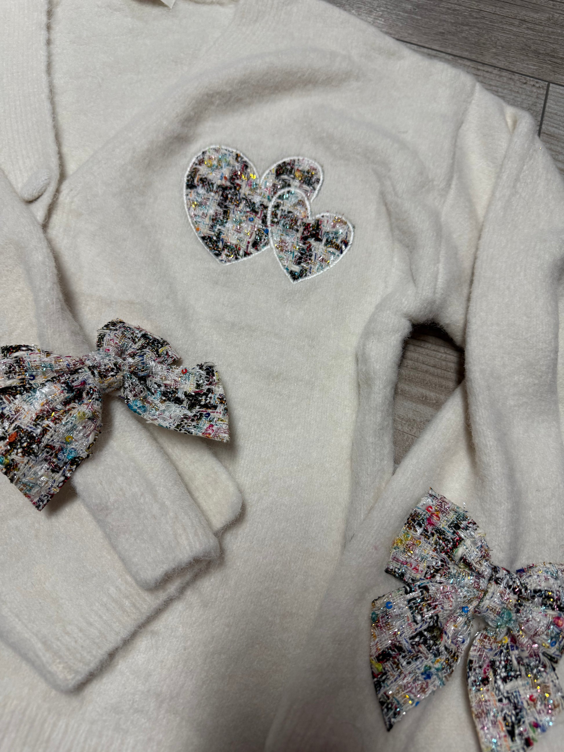 Tweed Schleife detailliert Herz Stick Jacke Wollemischung