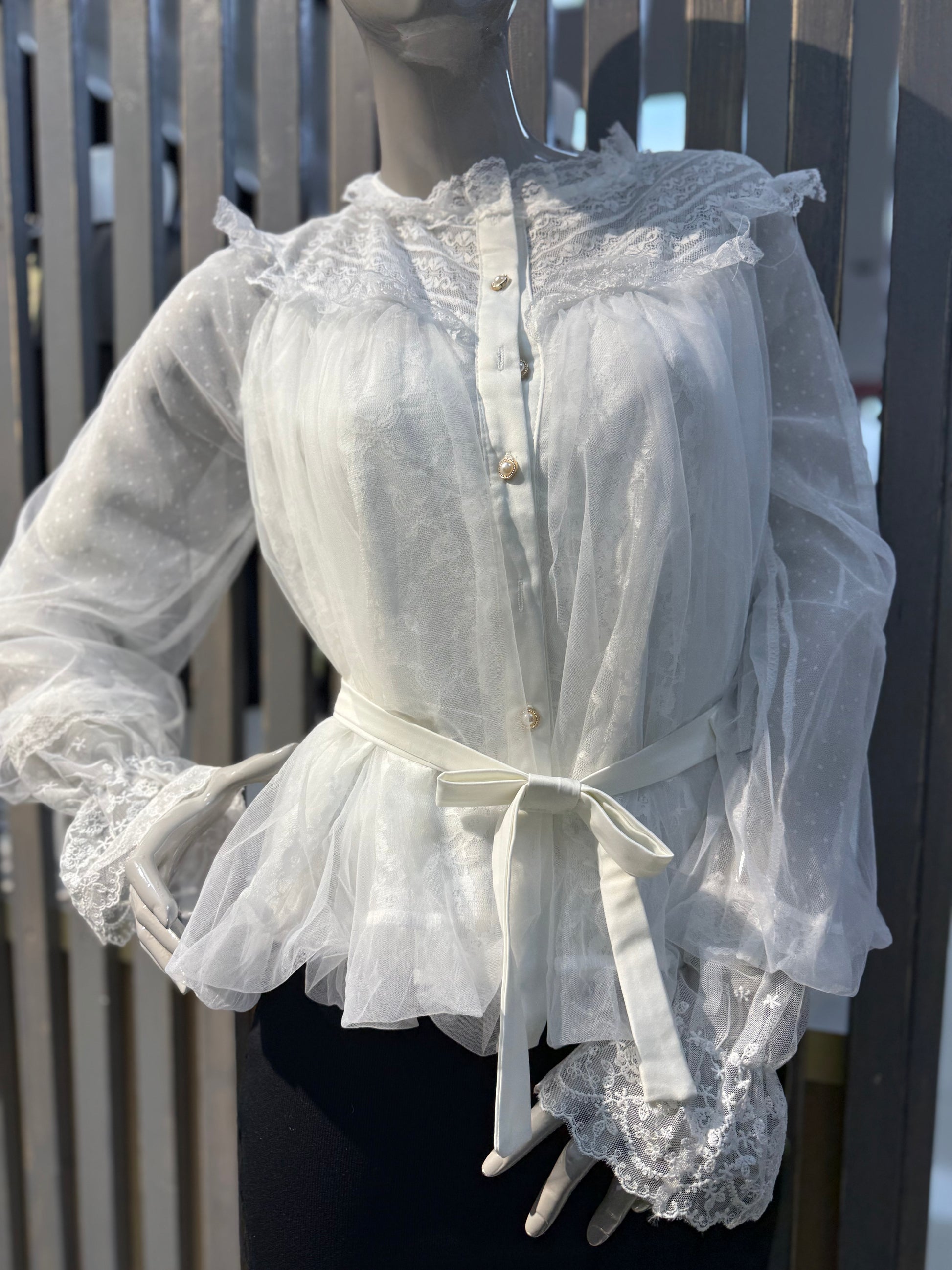 Vintage Bluse Perle Knöpfe Details mit Gürtel